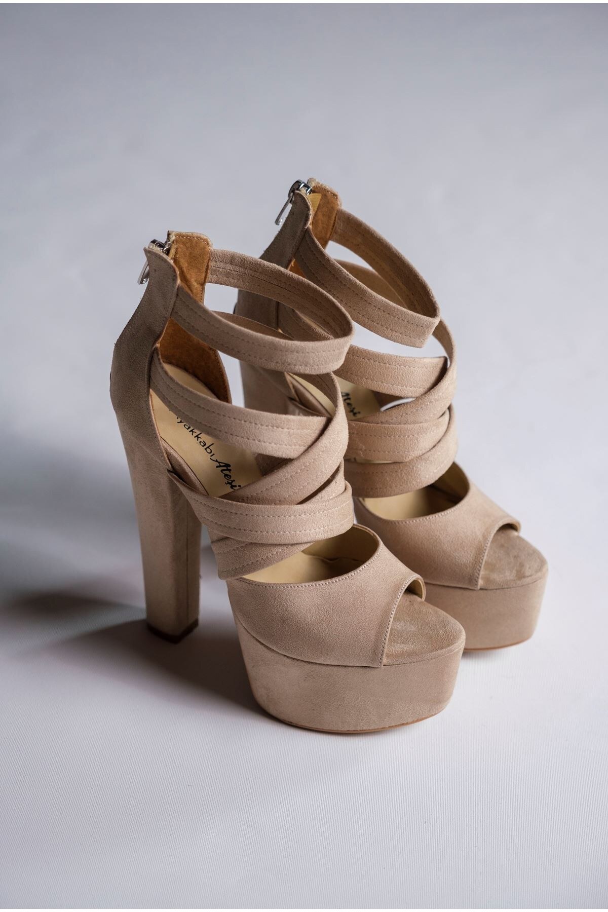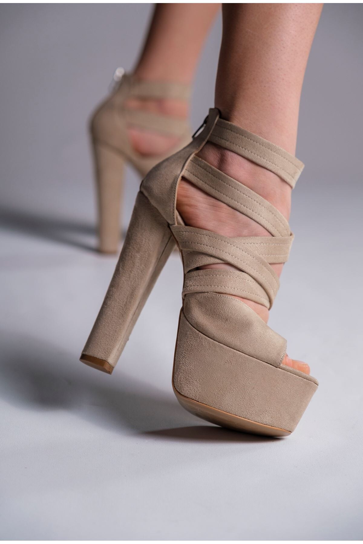 Kadın Kalın Topuklu Platform Ayakkabı Peri Ten Süet