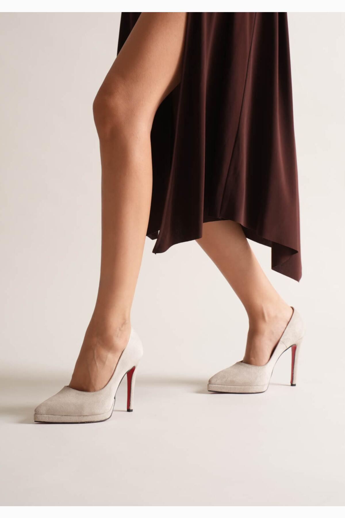 Kadın Platformlu İnce Topuklu Ayakkabı Nicola Bej Dana Süet