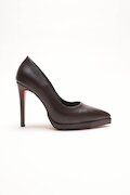 Kadın Platformlu İnce Topuklu Ayakkabı Nicola Kahverengi Rugan