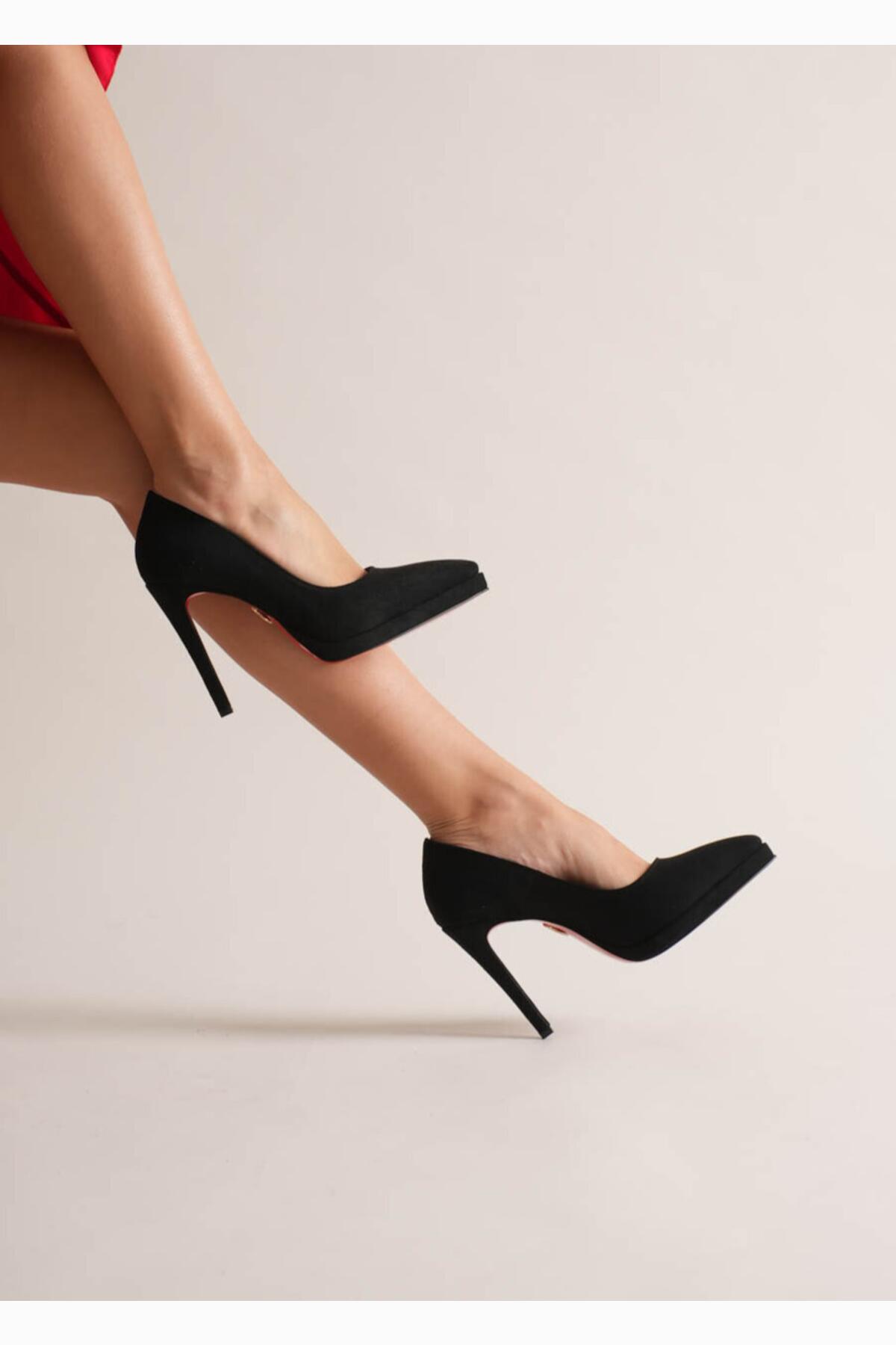 Kadın Platformlu İnce Topuklu Ayakkabı Nicola Siyah Süet