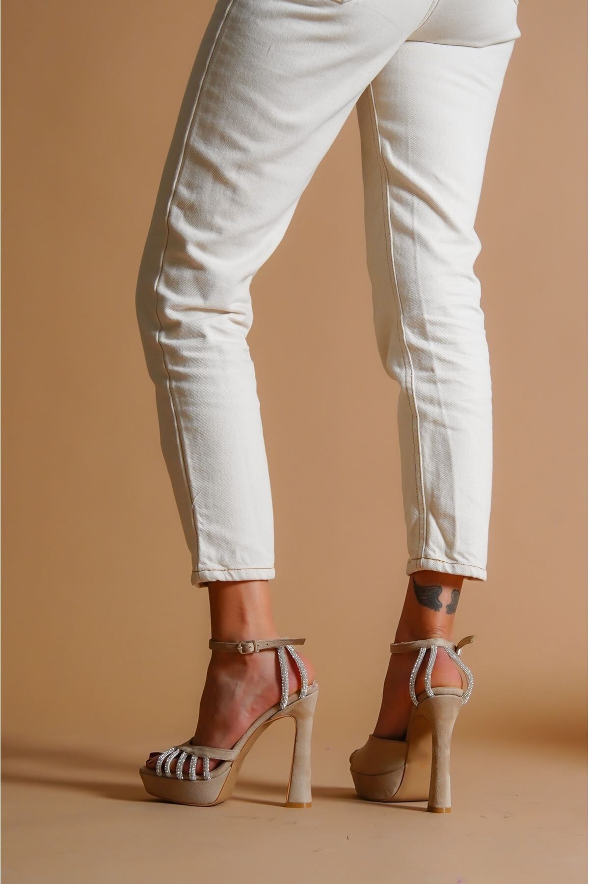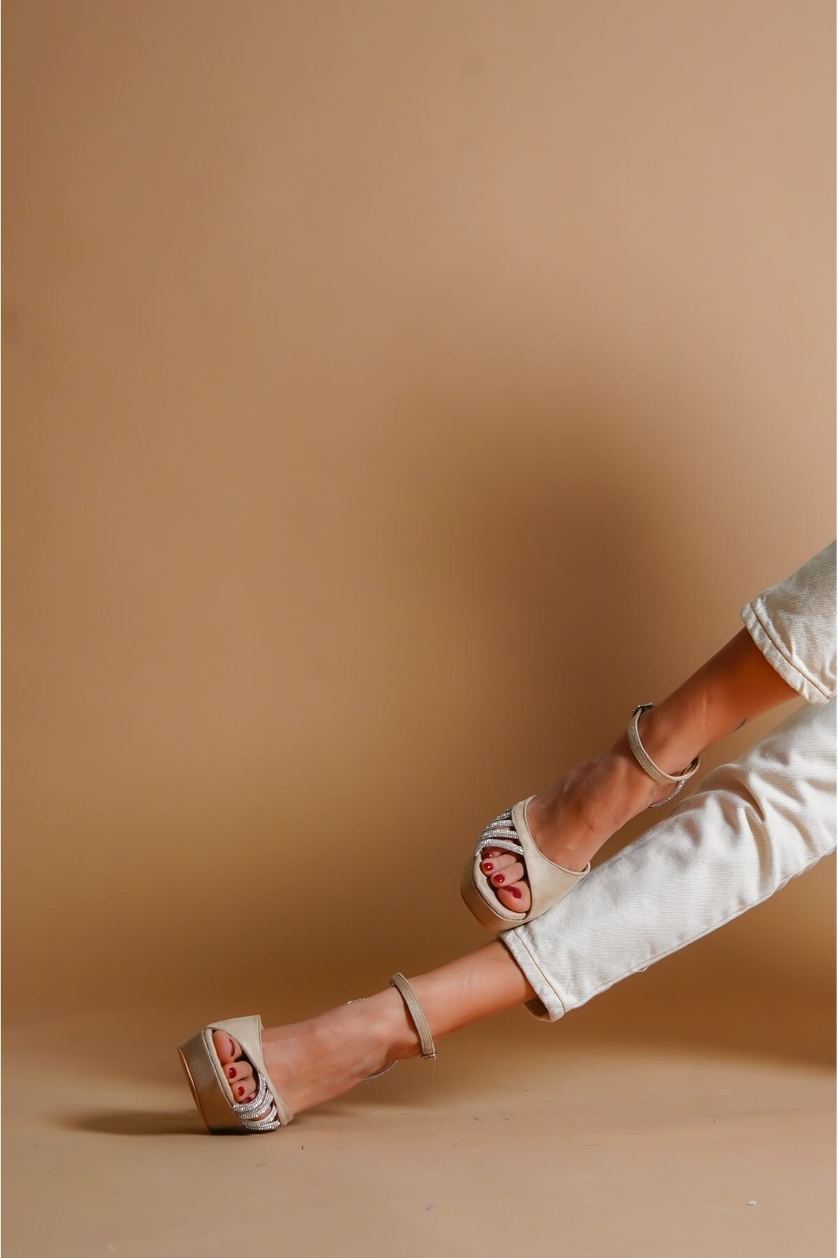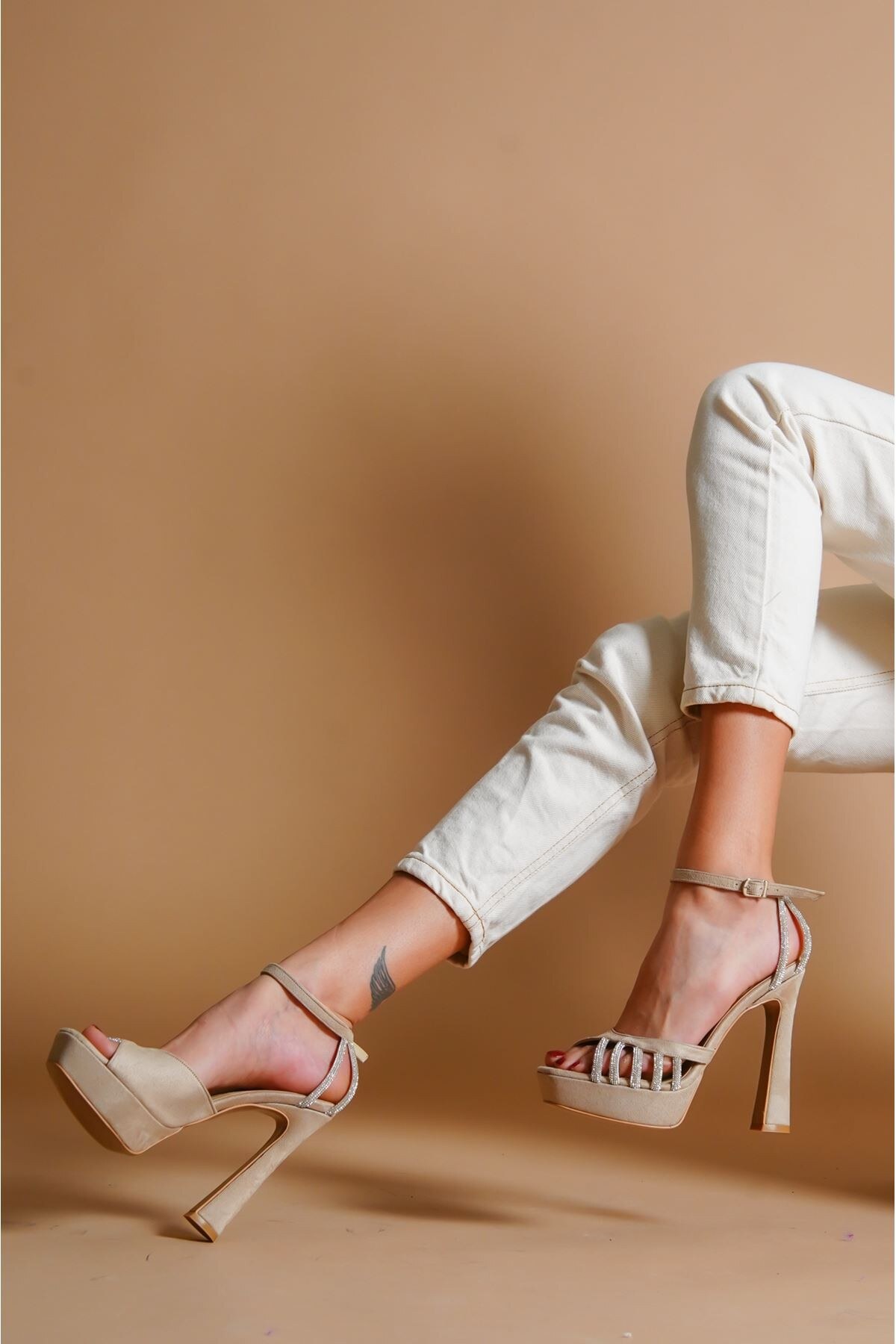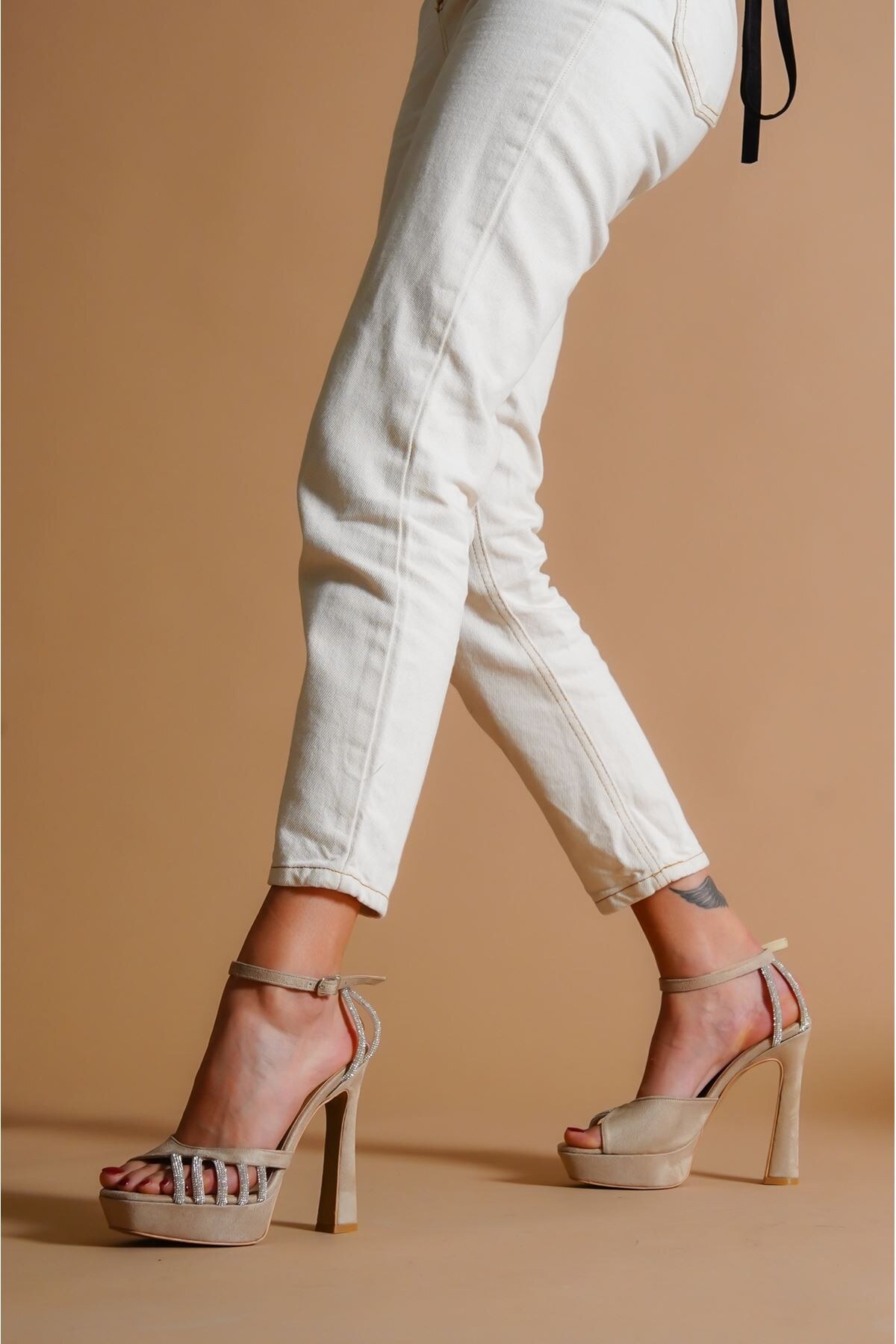 Kadın Taş Detaylı Alçak Platform Tasarım Ayakkabı Melanie Ten Süet