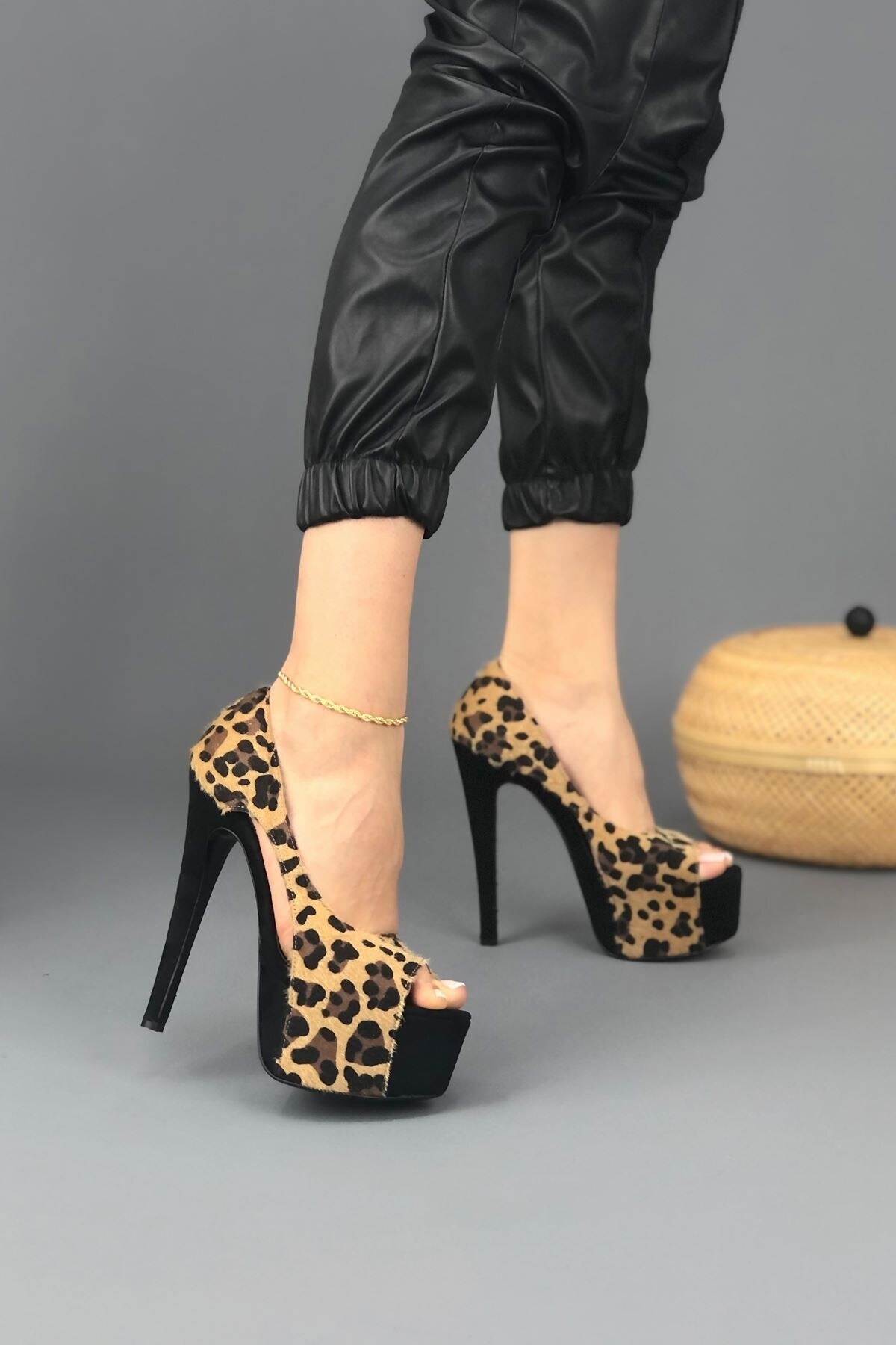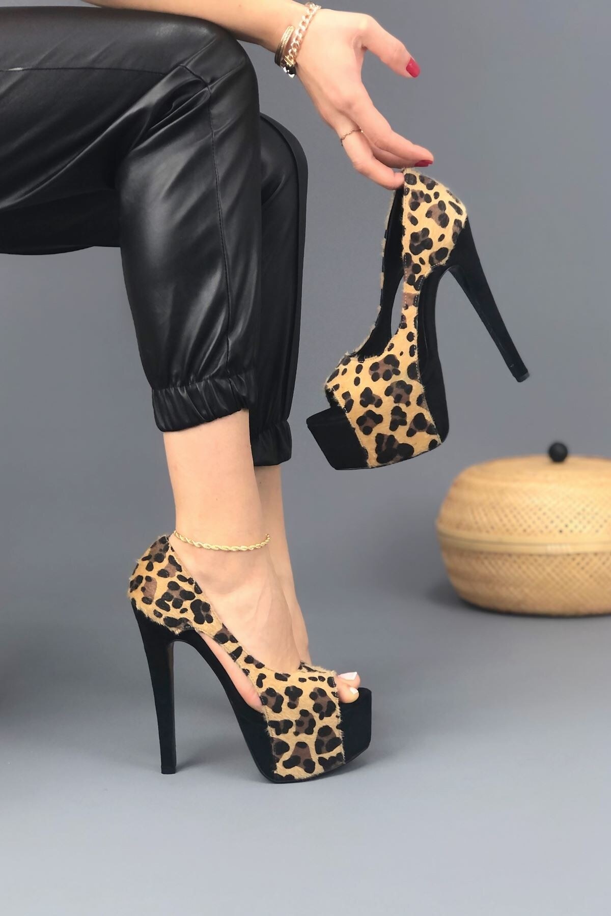 Kadın Tasarım Platform Topuklu Ayakkabı Chloe Leopar;siyah
