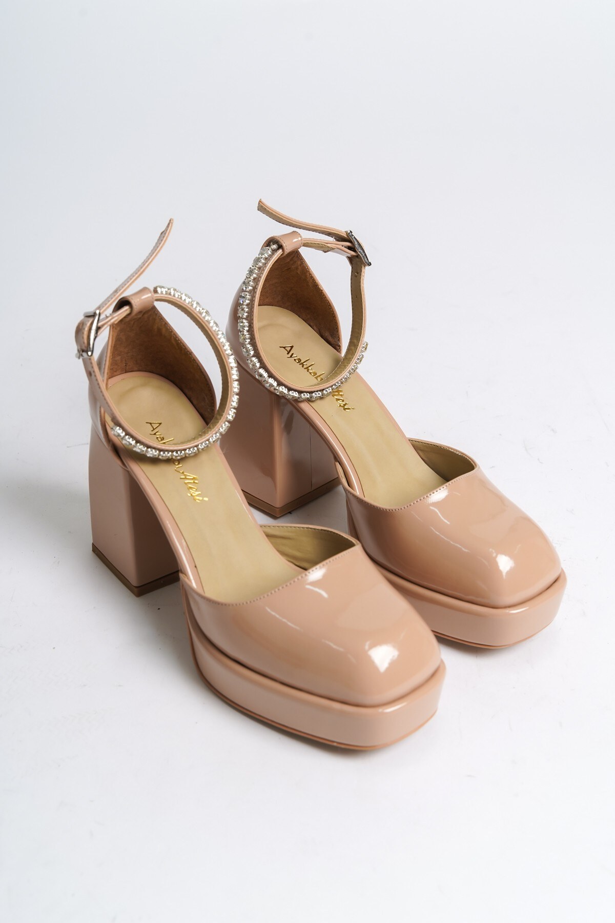 Kadın Taş Detaylı Özel Tasarım Alçak Topuklu Ayakkabısı Sandyo Nude Rugan