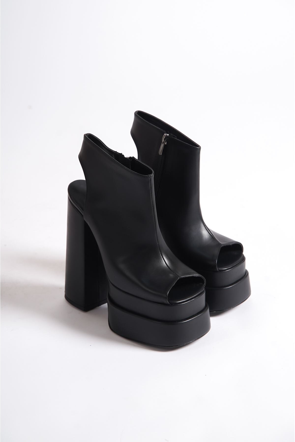 Kadın Burun Açık Tasarım Yüksek Platform Ayakkabı Elay Siyah Cilt