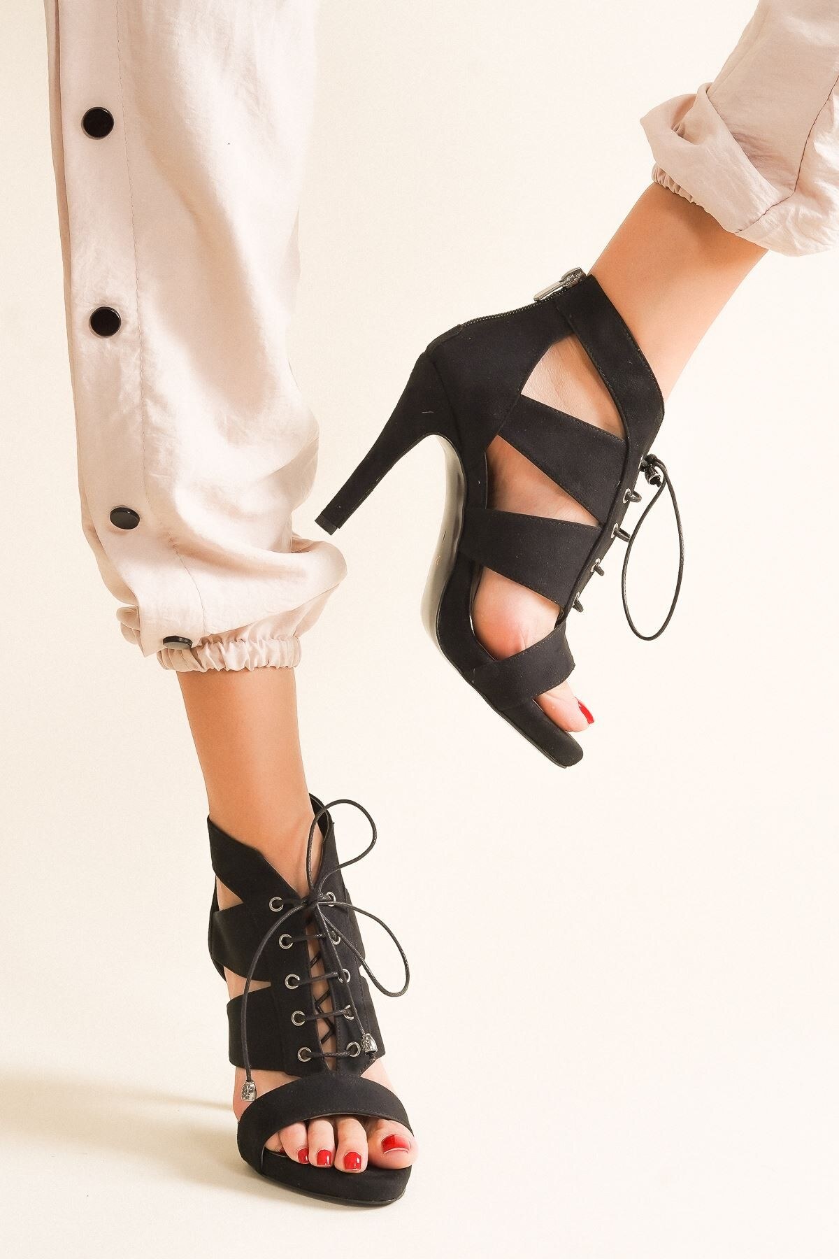 Kadın Bağcıklı Platform Topuklu Ayakkabı Lina Siyah