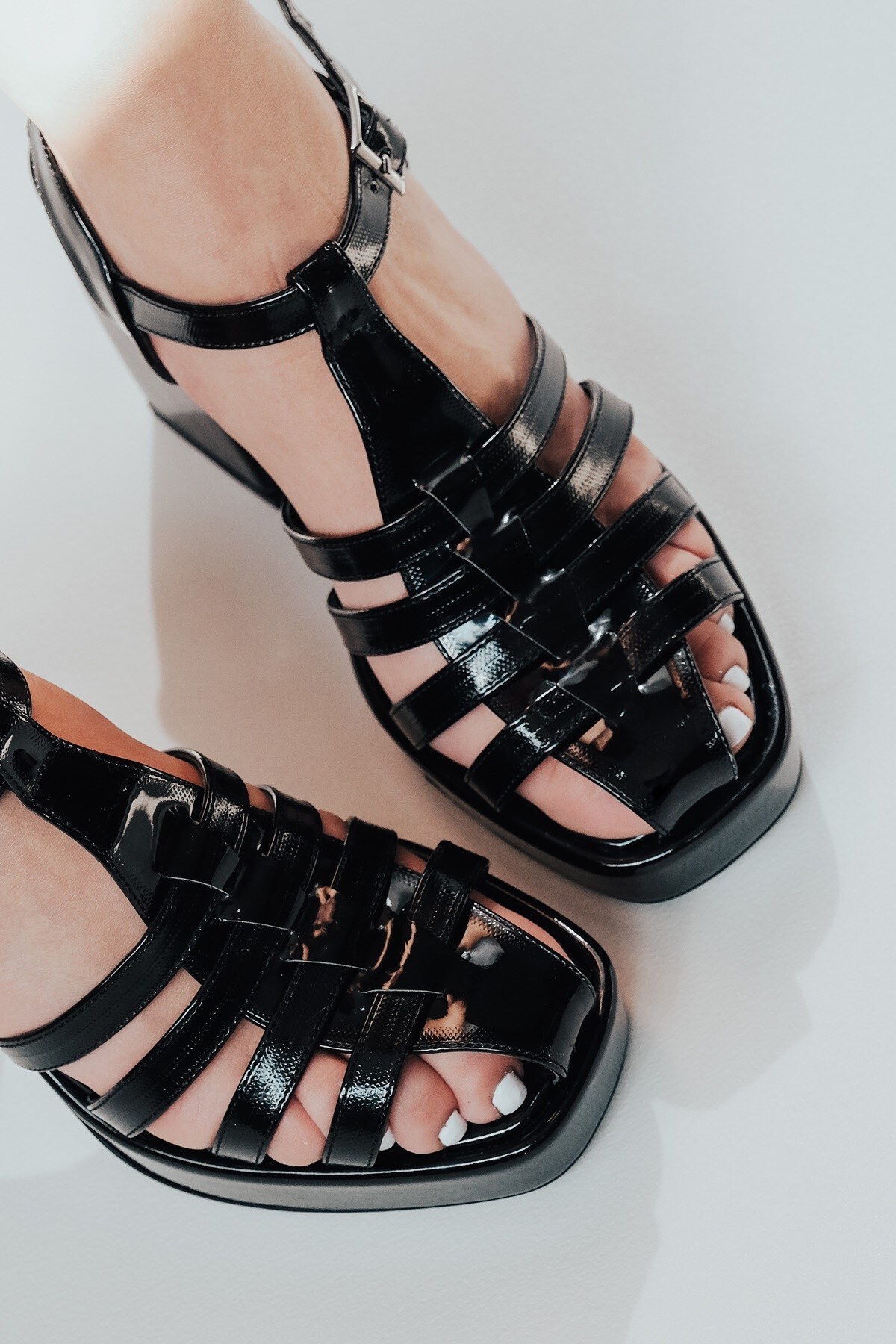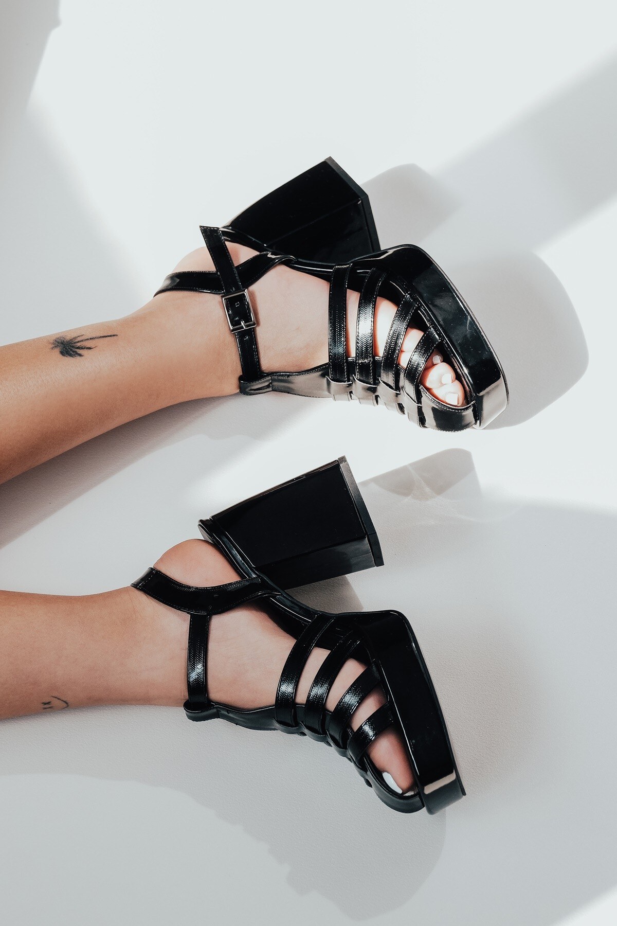 Kadın Gladyatör Kalın Topuklu Ayakkabı Hira Siyah