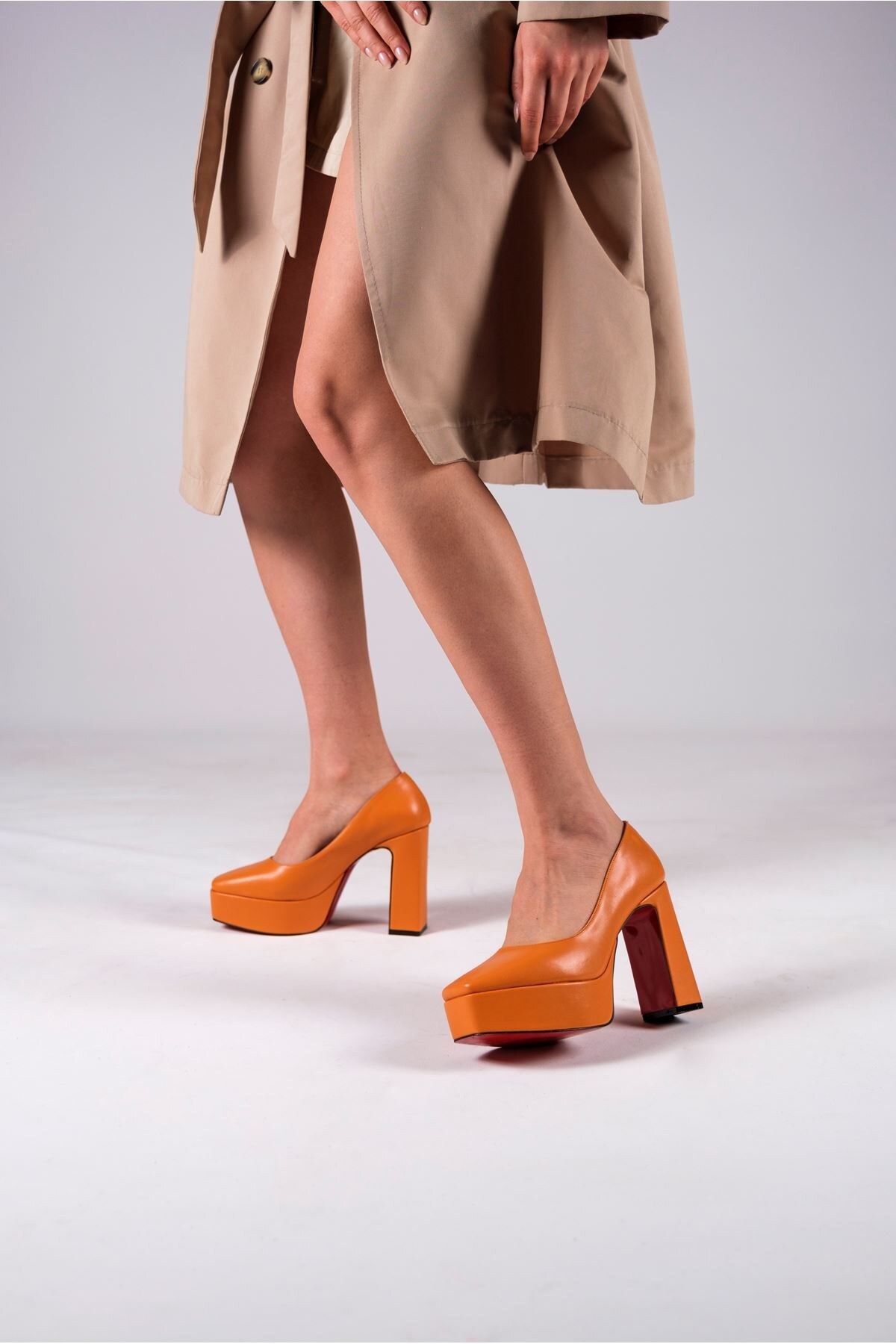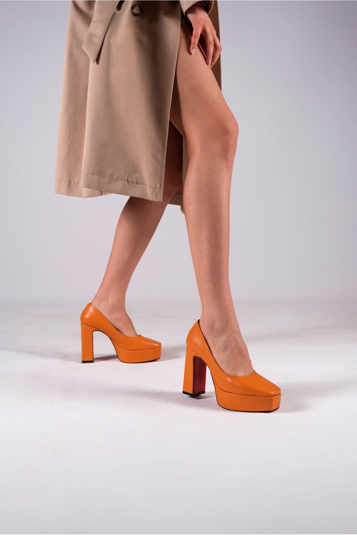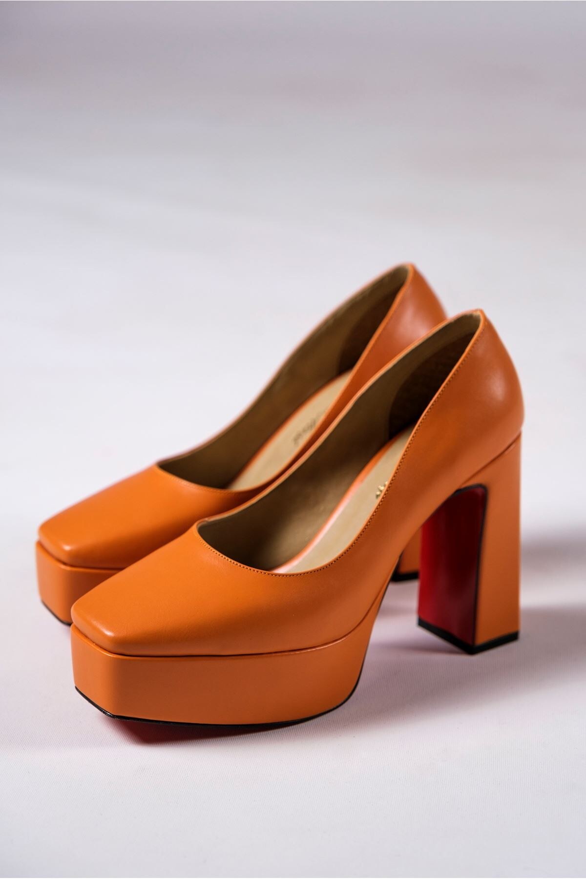 Turuncu Kadın Kalın Topuklu Ayakkabı Stiletto Ecovan Turuncu