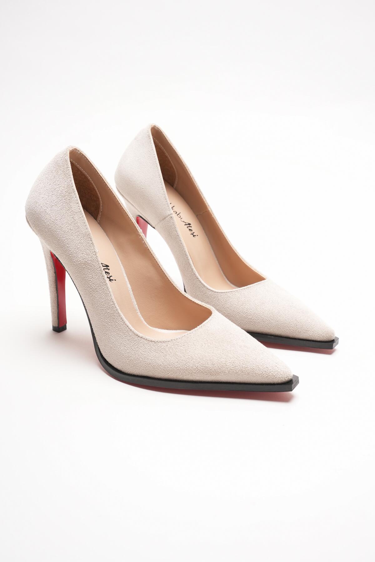 Stiletto Topuklu Ayakkabı Sivri Burun Klasik Abiye Kadın Ayakkabısı Tokyo Bej Dana Süet