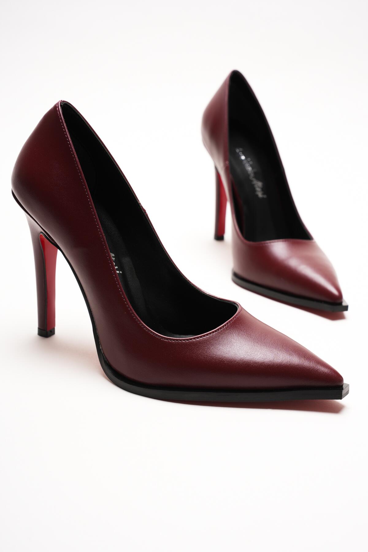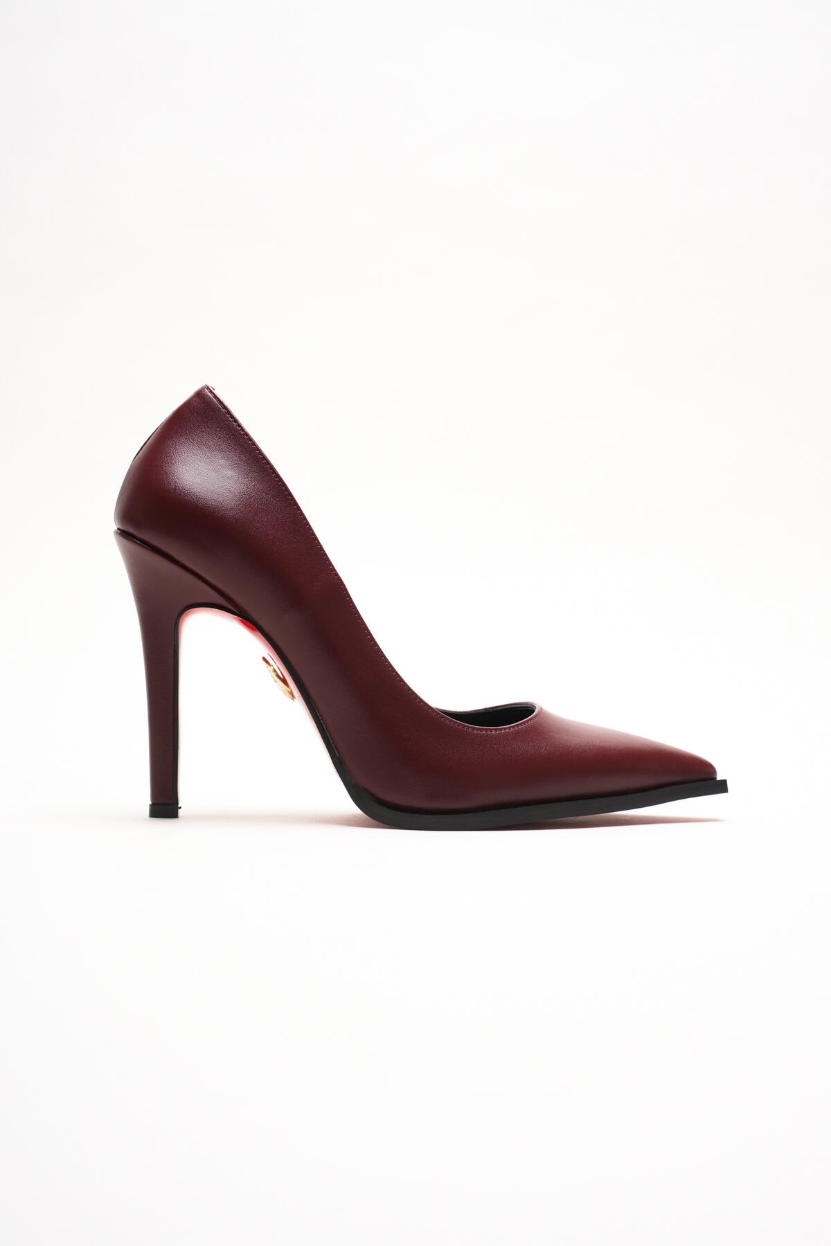 Stiletto Topuklu Ayakkabı Sivri Burun Klasik Abiye Kadın Ayakkabısı Tokyo Bordo Cilt