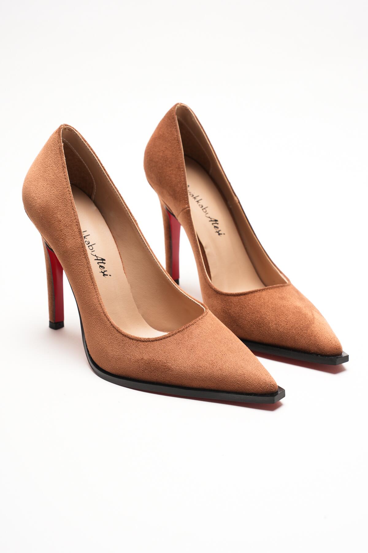 Stiletto Topuklu Ayakkabı Sivri Burun Klasik Abiye Kadın Ayakkabısı Tokyo Taba Süet