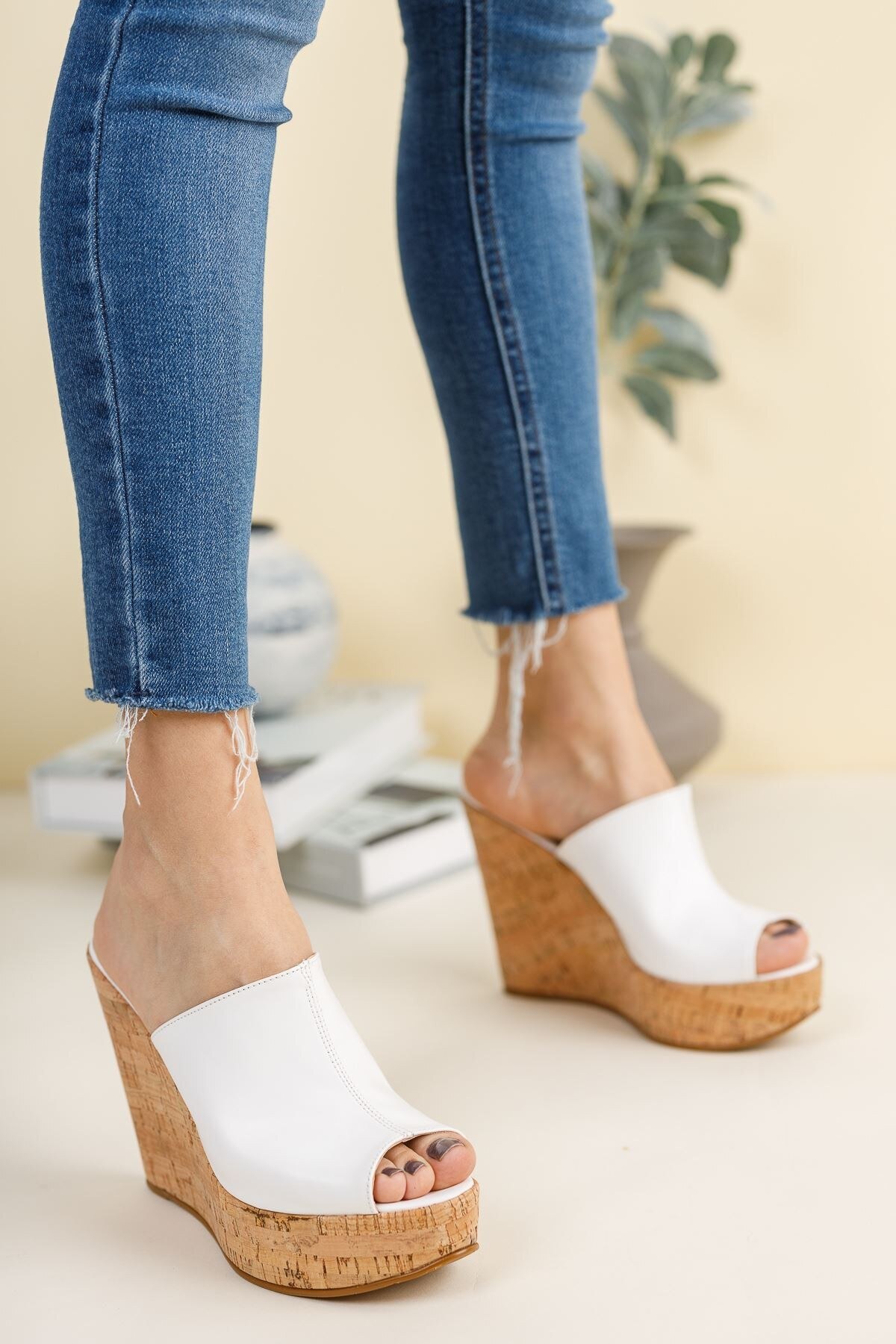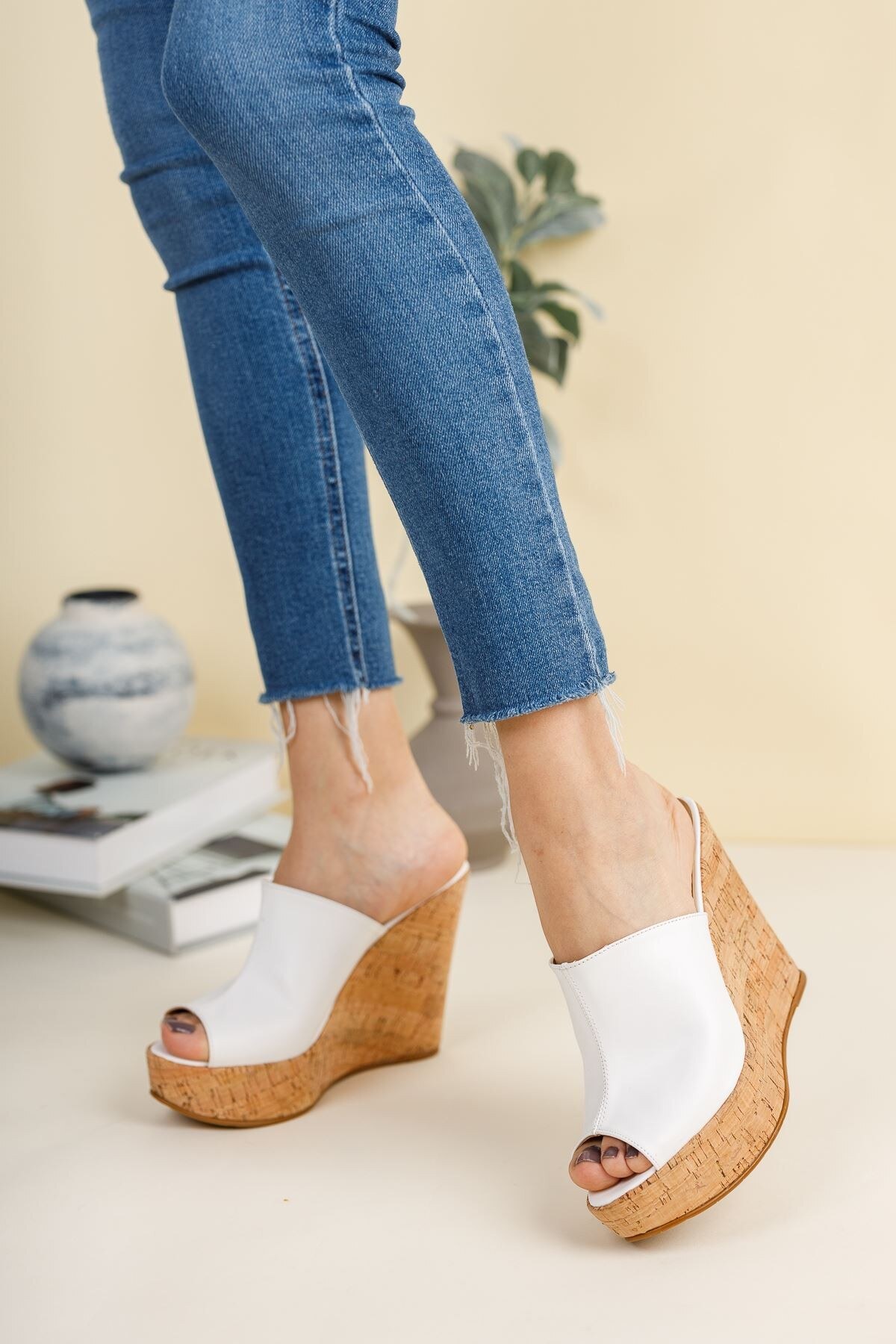 Kadın Burun Açık Dolgu Topuklu Terlik Loki Beyaz
