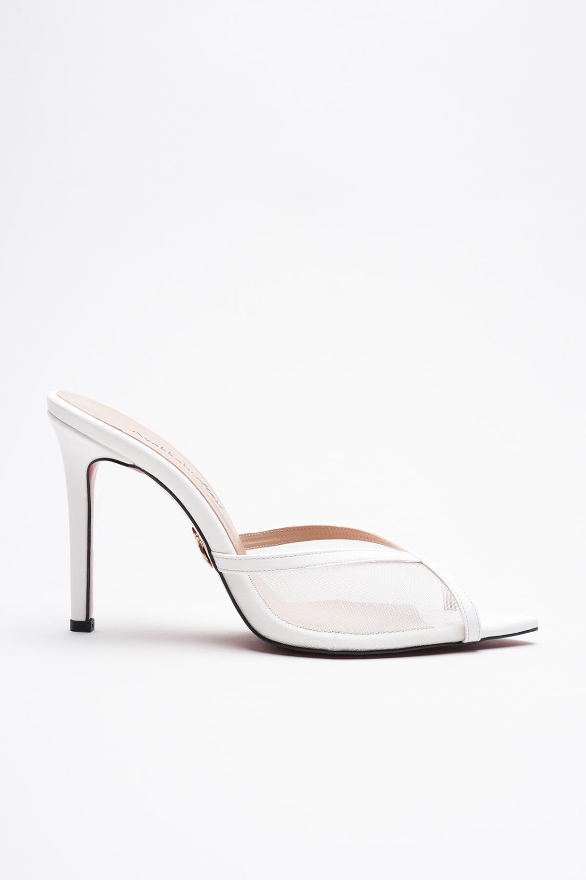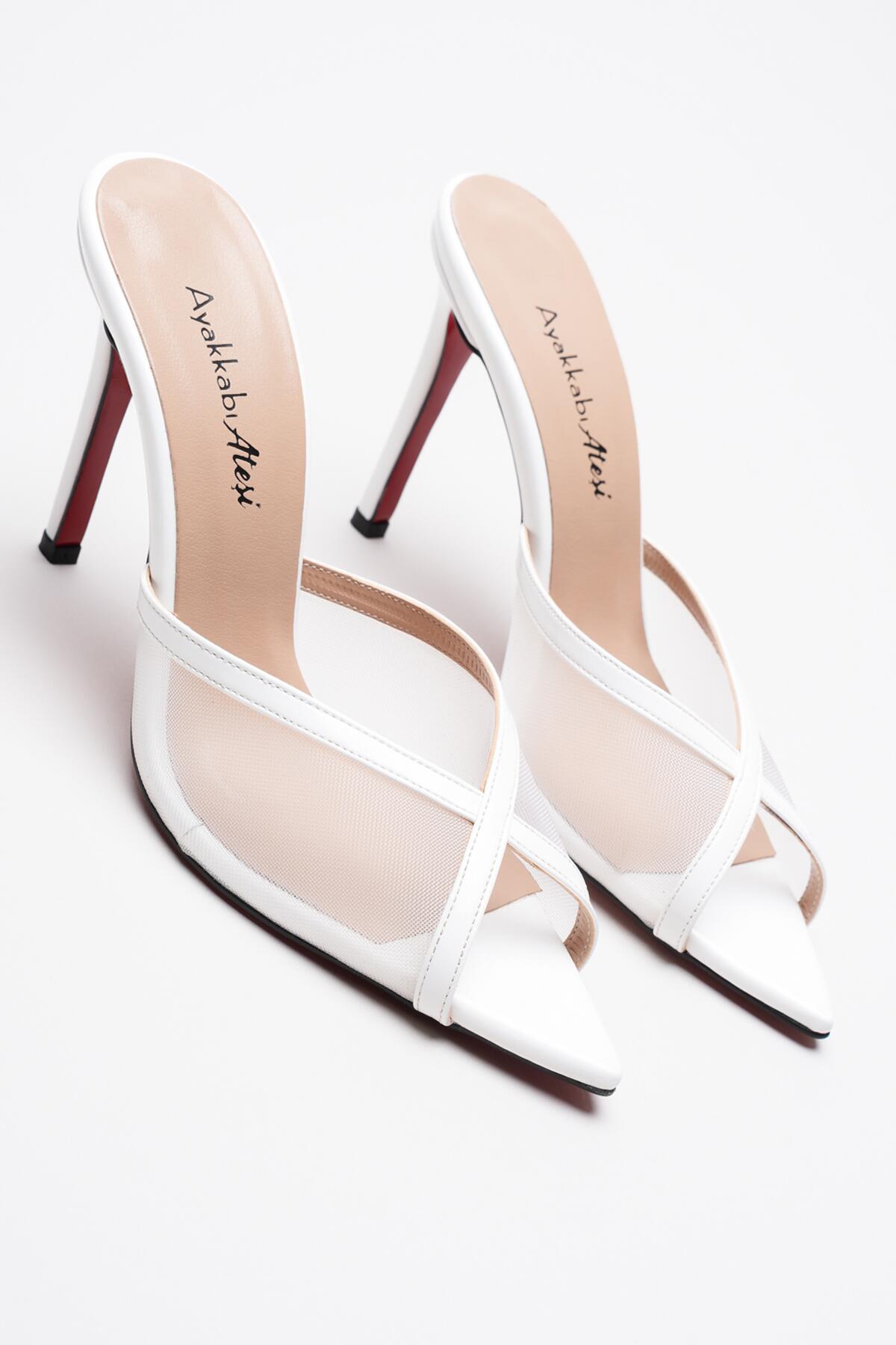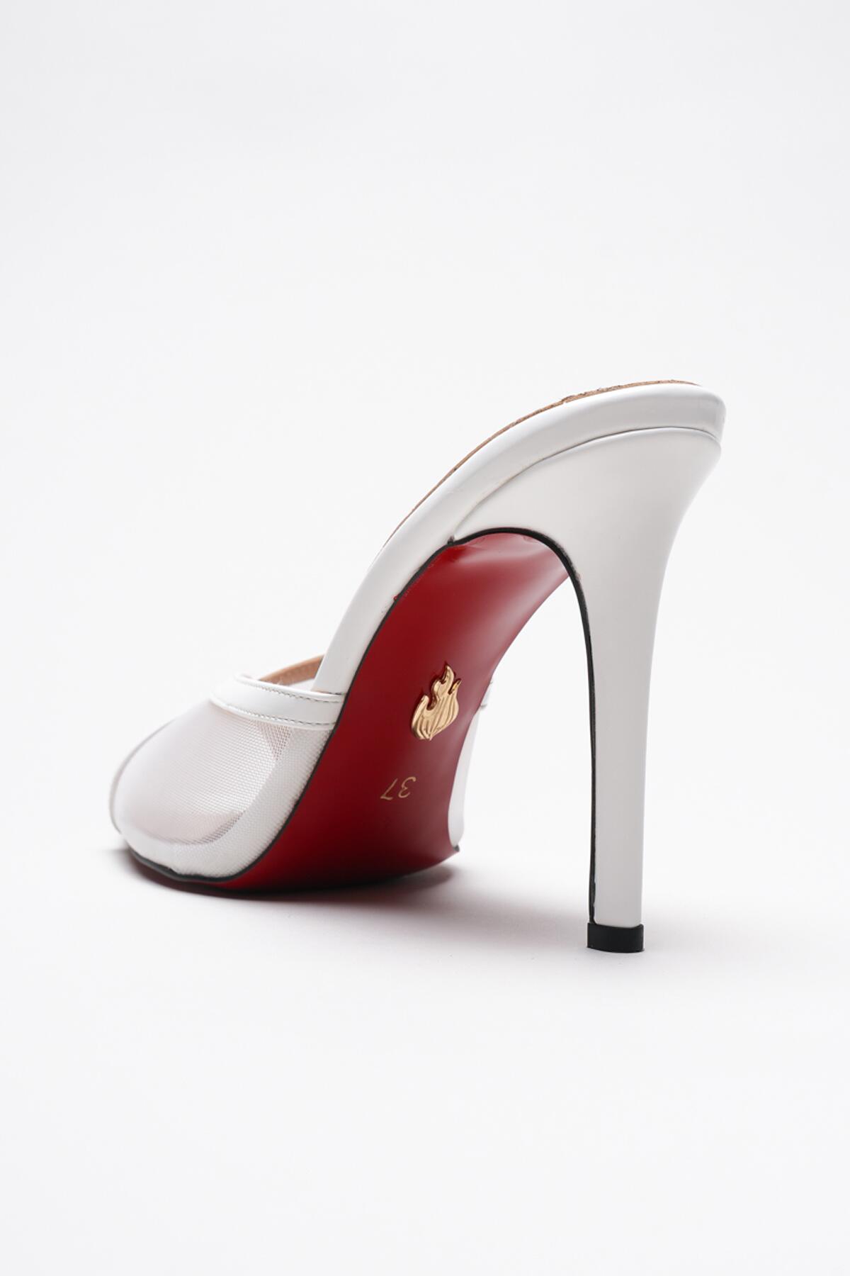 Kadın Burun Açık Fileli Topuklu Terlik Yekta Beyaz Rugan
