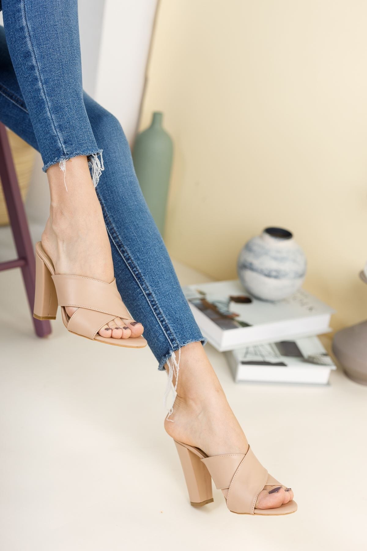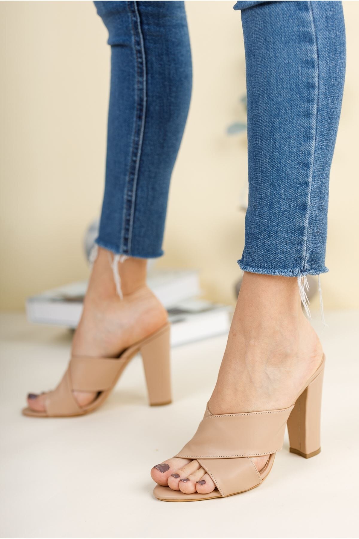 Kadın Çapraz Bantkalın Topuklu Terlik Arone Nude Cilt