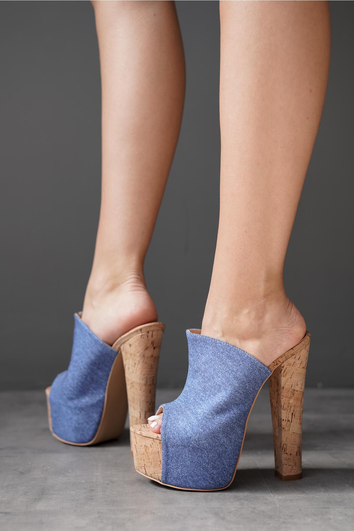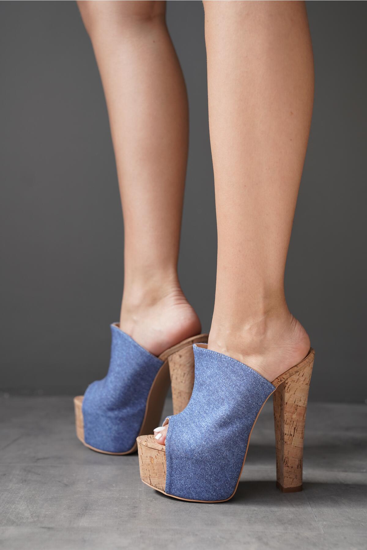 Kadın Kalın Topuk Yüksek Platform Terlik Simsi Kot