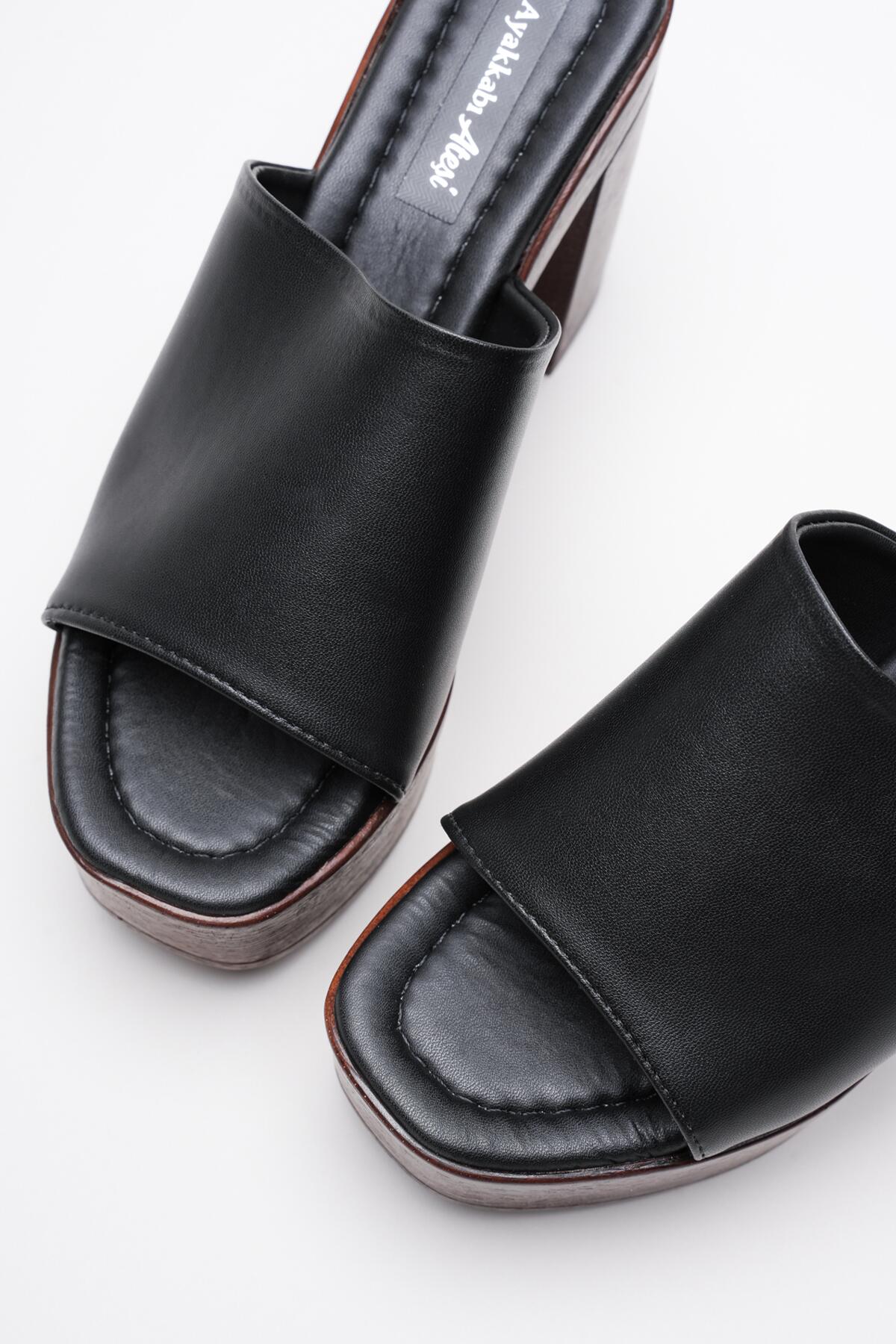 Kadın Mantar Taban Tek Yüz Topuklu Terlik Caseli Siyah Cilt
