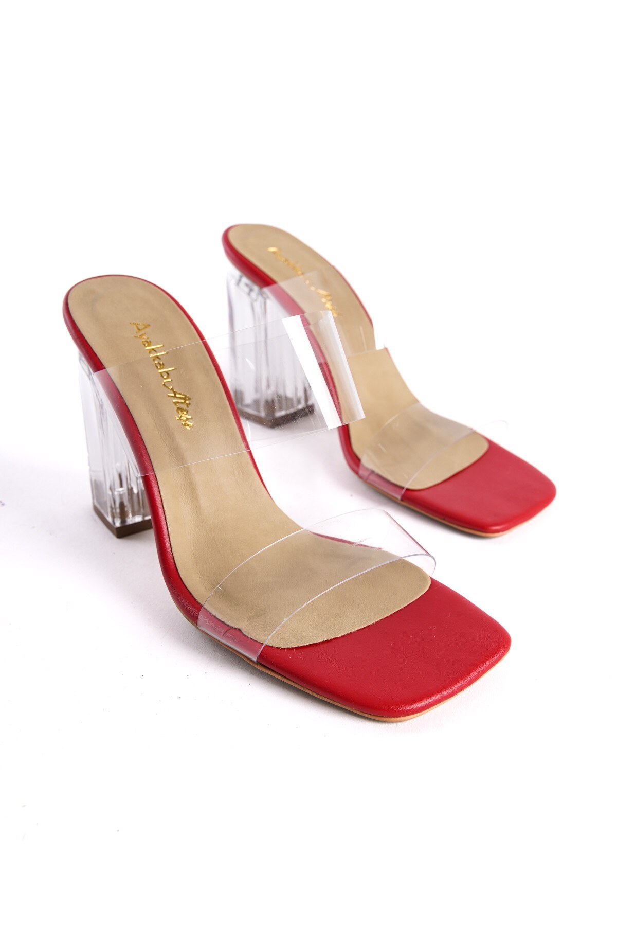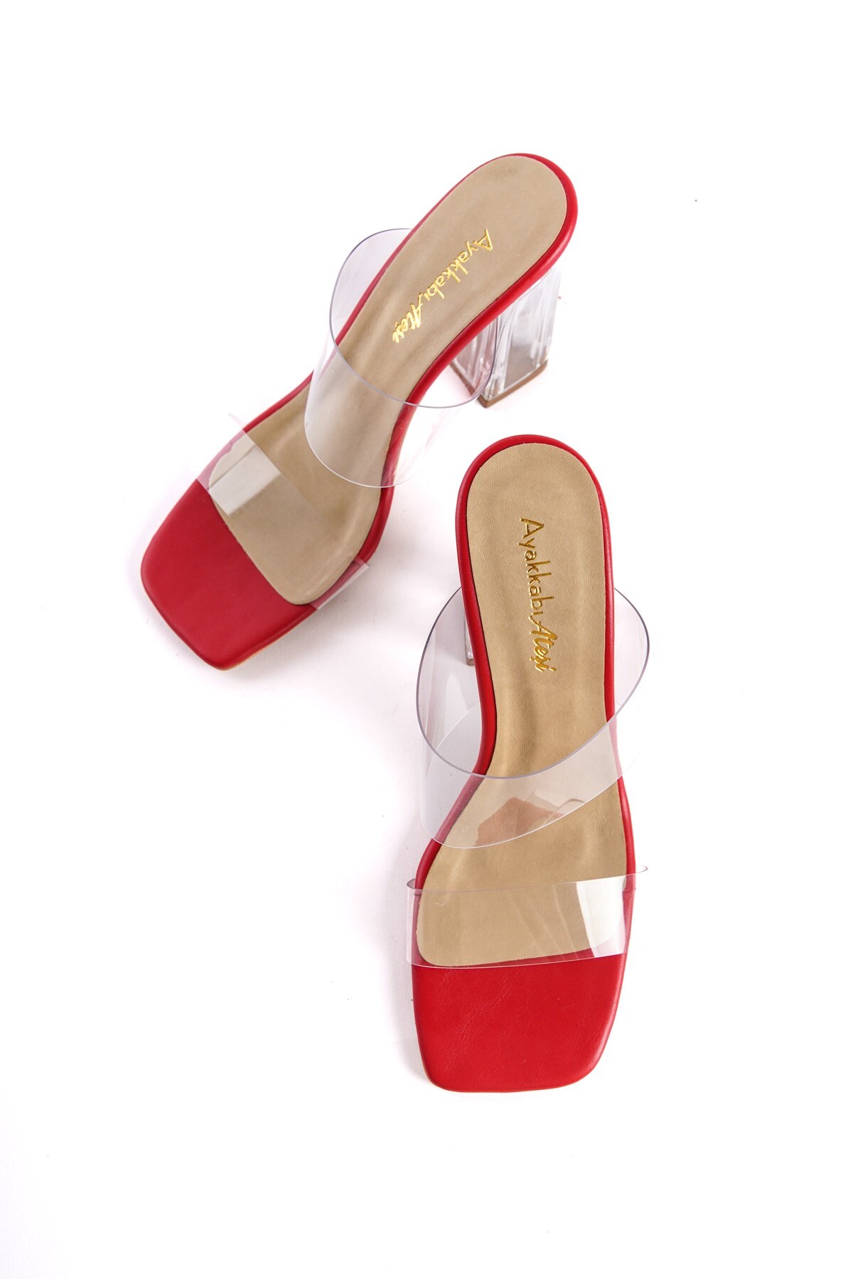 Kadın Şeffaf Topuklu Terlik Bale Kırmızı Cilt