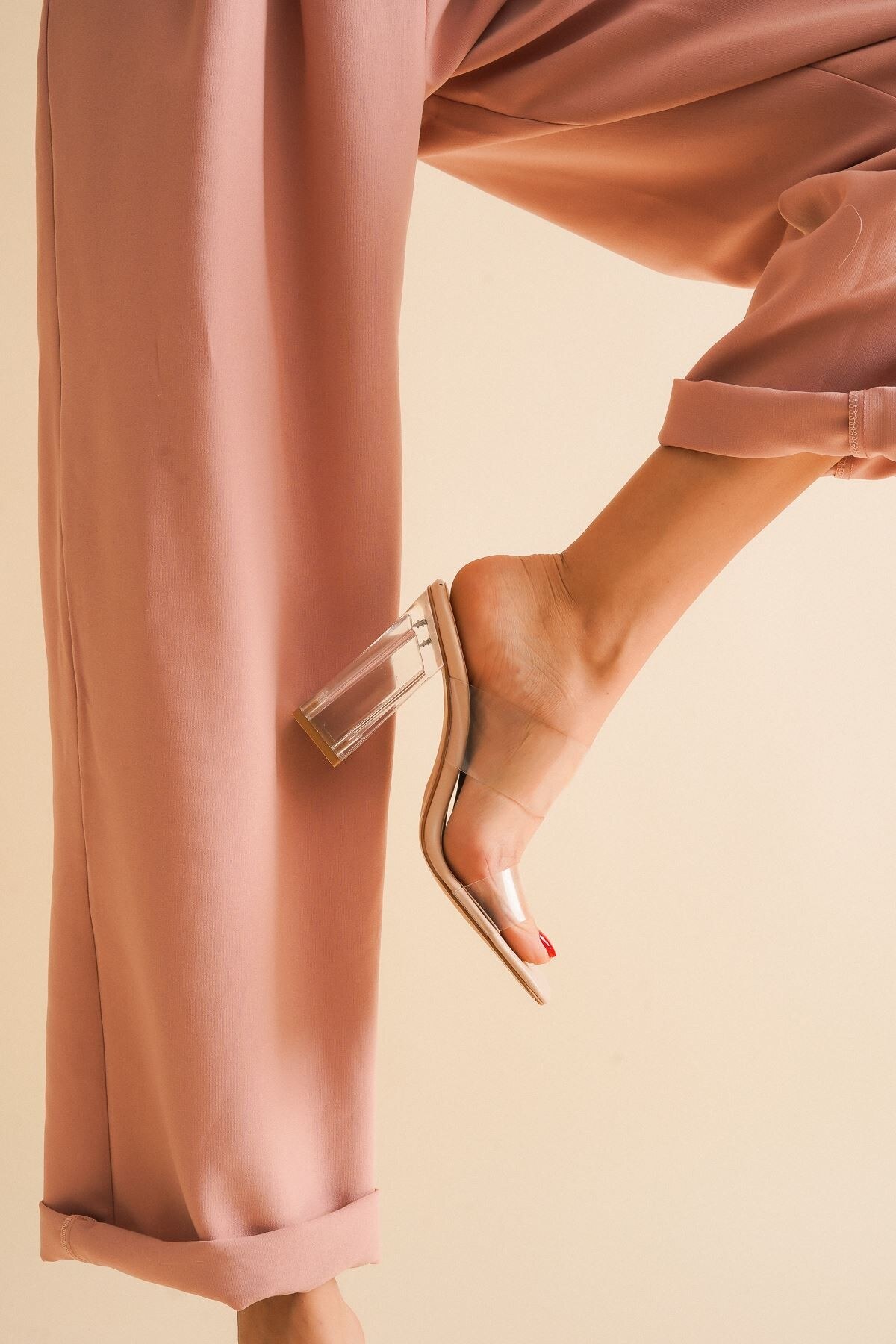Kadın Şeffaf Topuklu Terlik Bale Nude