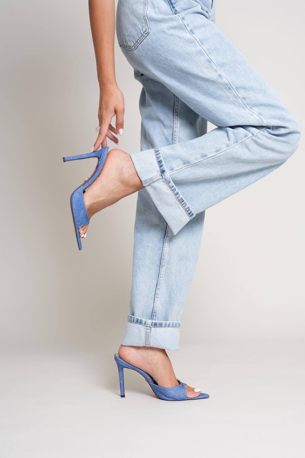 Kadın Sivri Burun İnce Topuklu Terlik Sona Kot