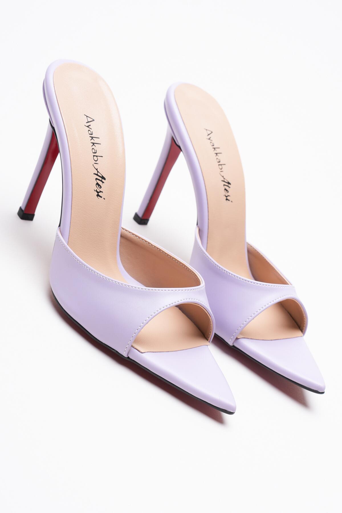 Kadın Sivri Burun İnce Topuklu Terlik Sona Lila