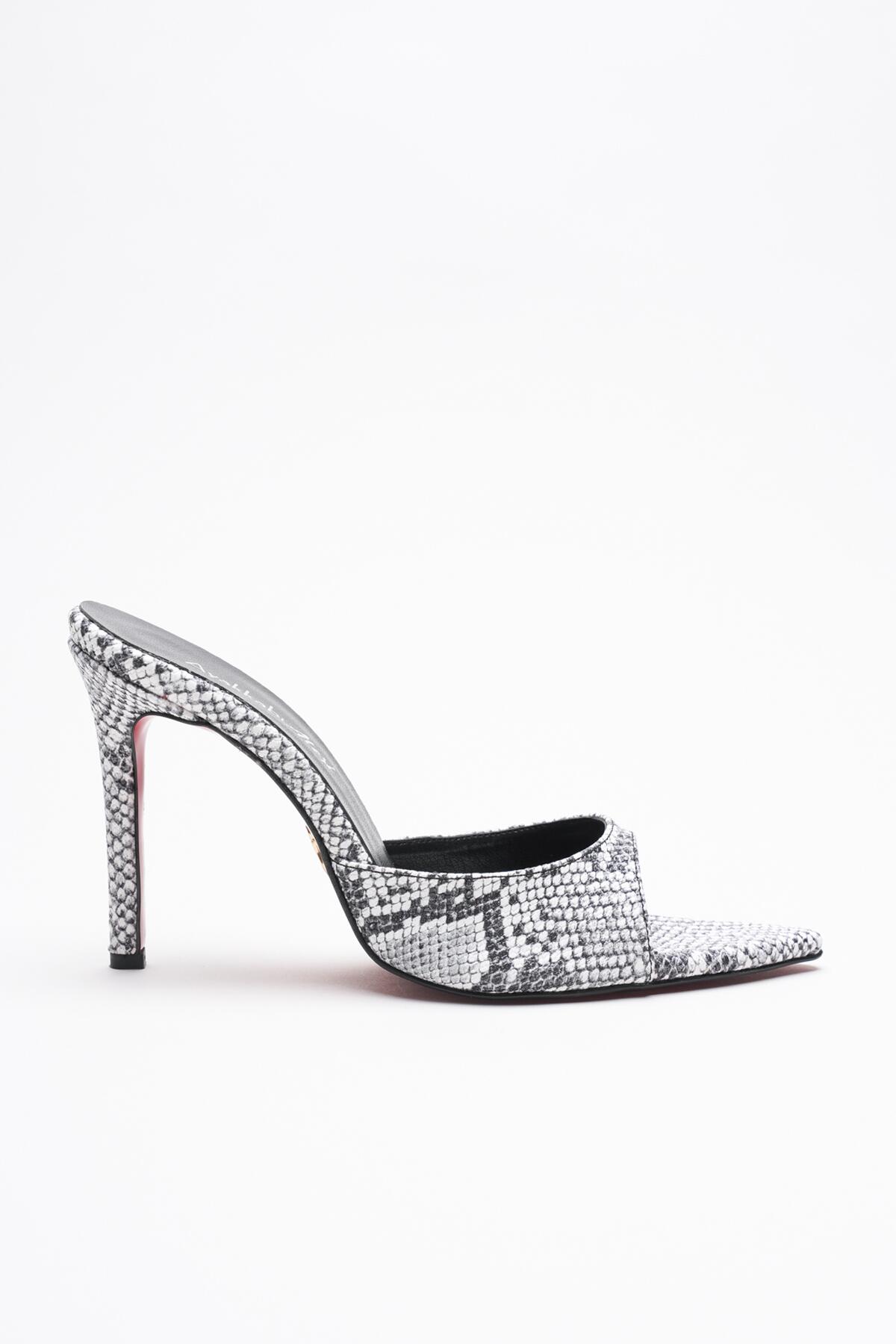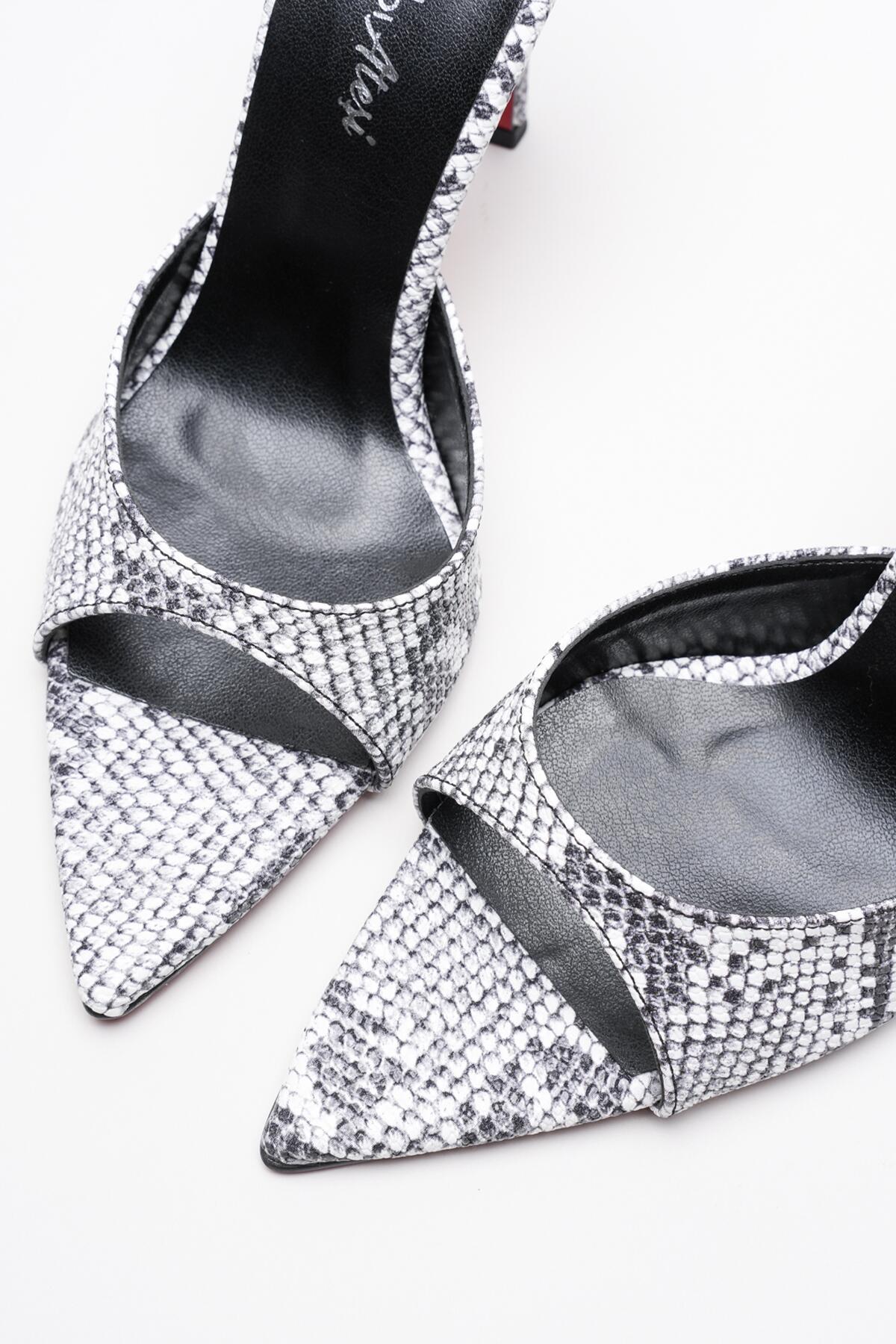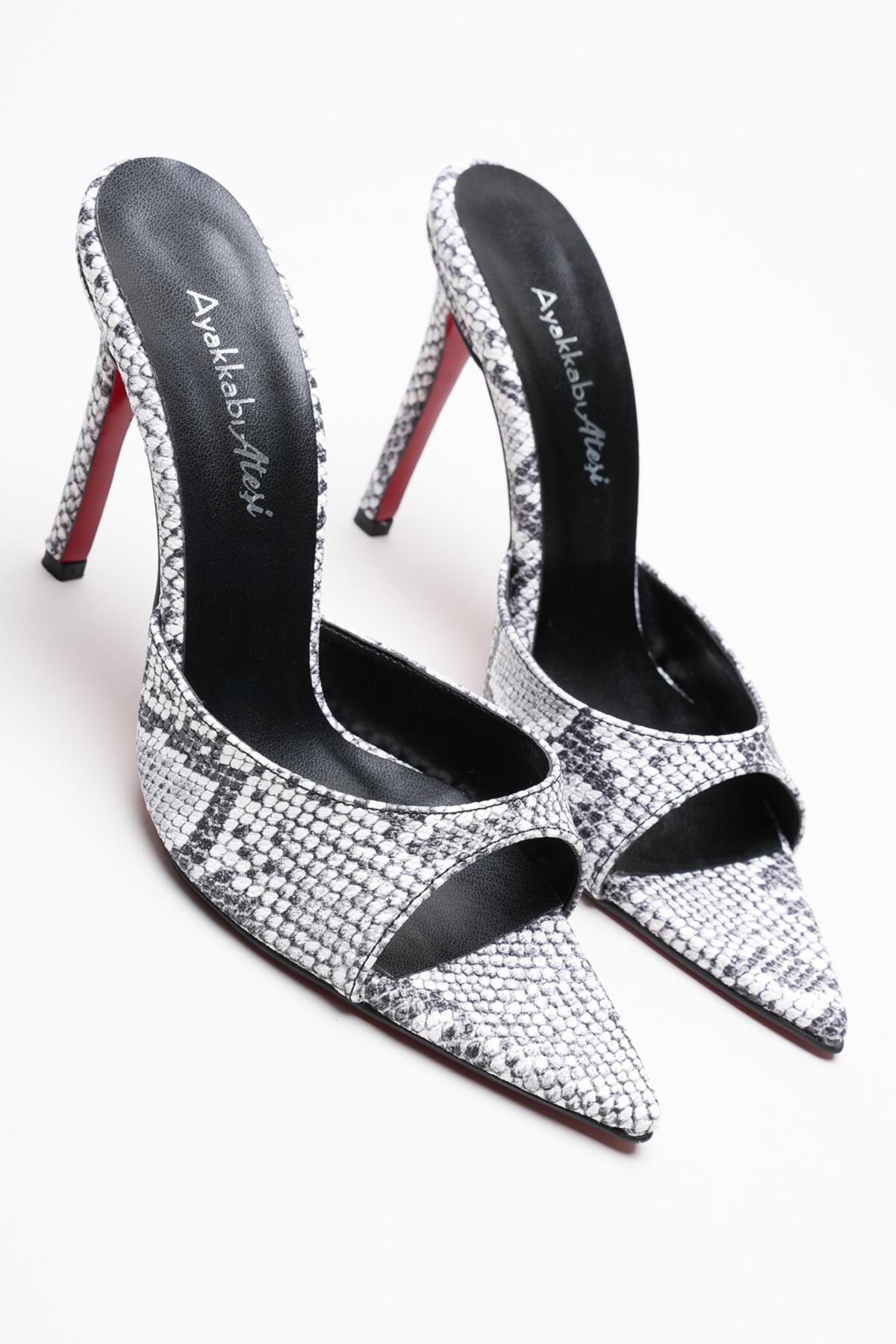 Kadın Sivri Burun İnce Topuklu Terlik Sona Siyah Yılan