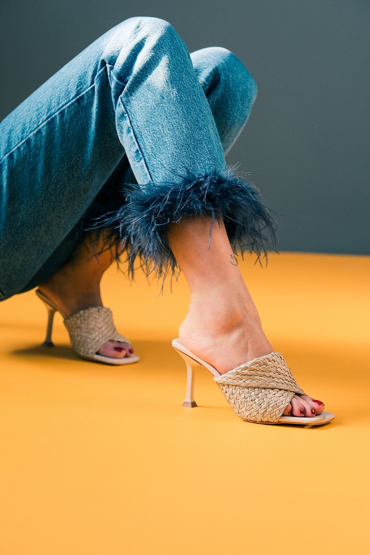Kadın Çapraz Dolgu Topuklu Terlik Divani