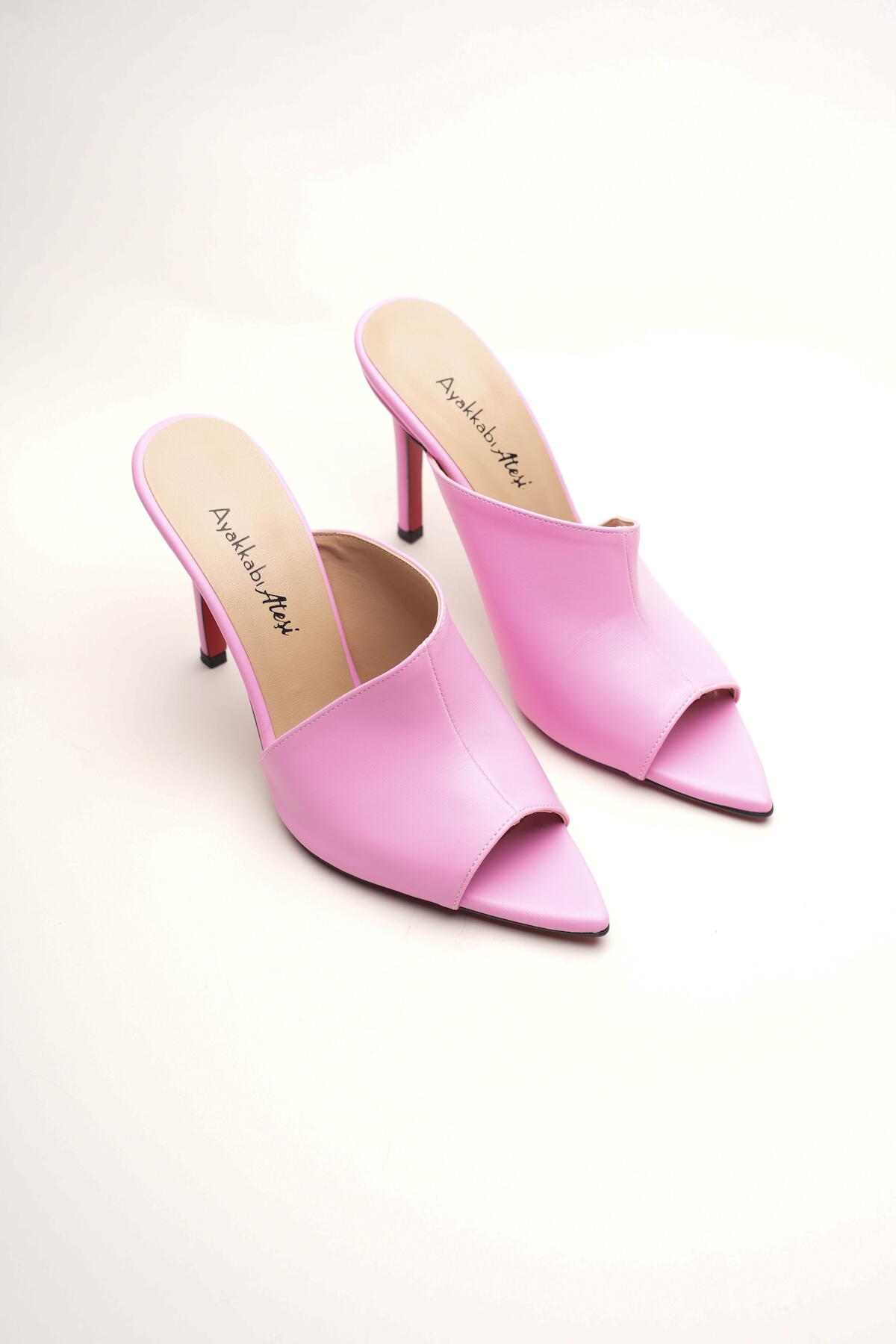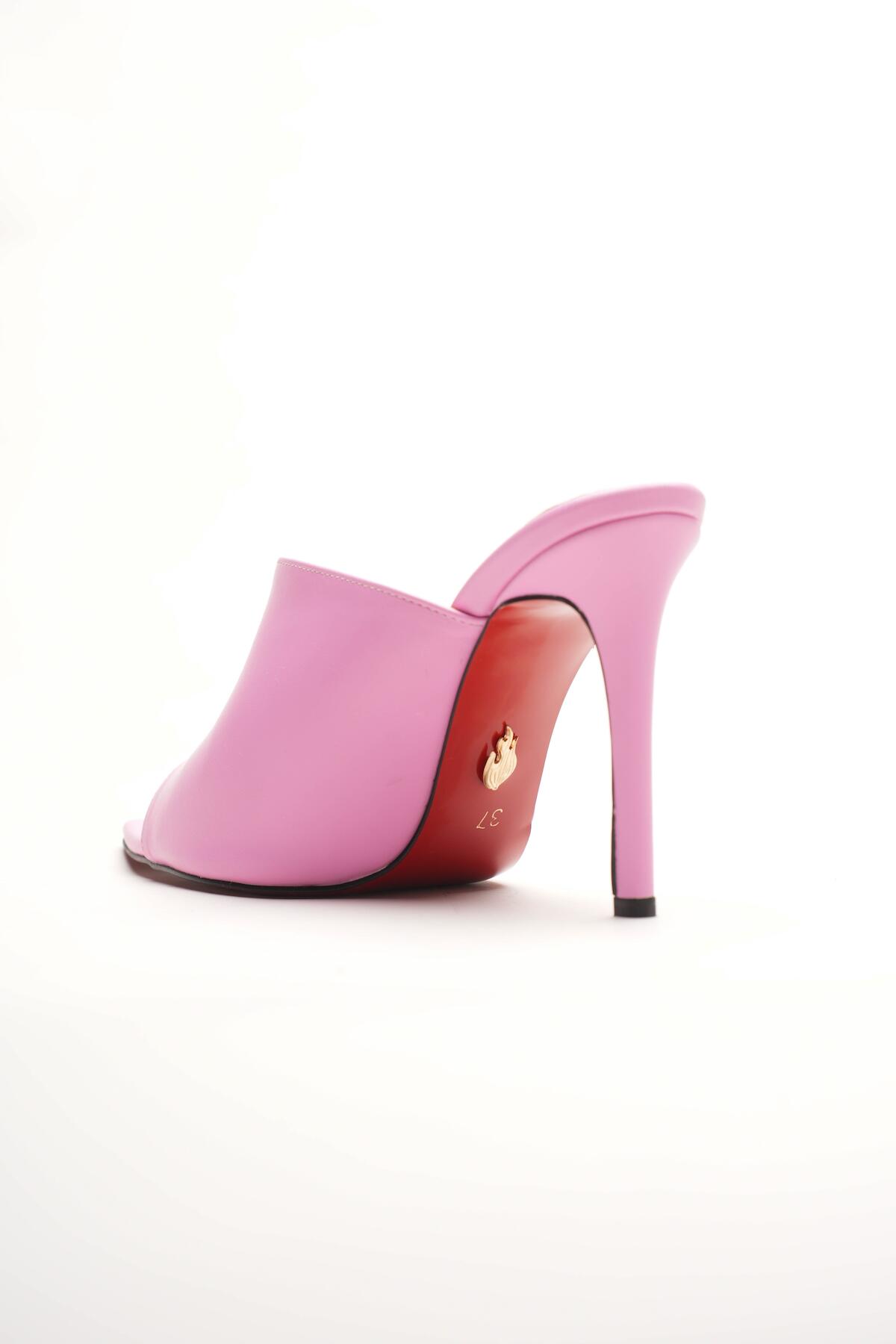 Kadın Tasarım İnce Topuklu Terlik Carolina Pembe Cilt