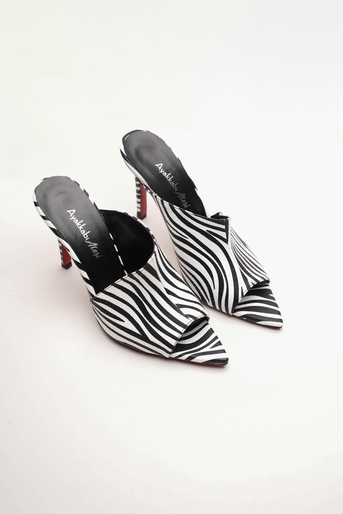 Kadın Tasarım İnce Topuklu Terlik Carolina Zebra