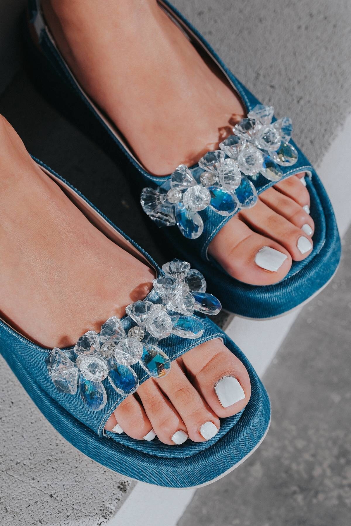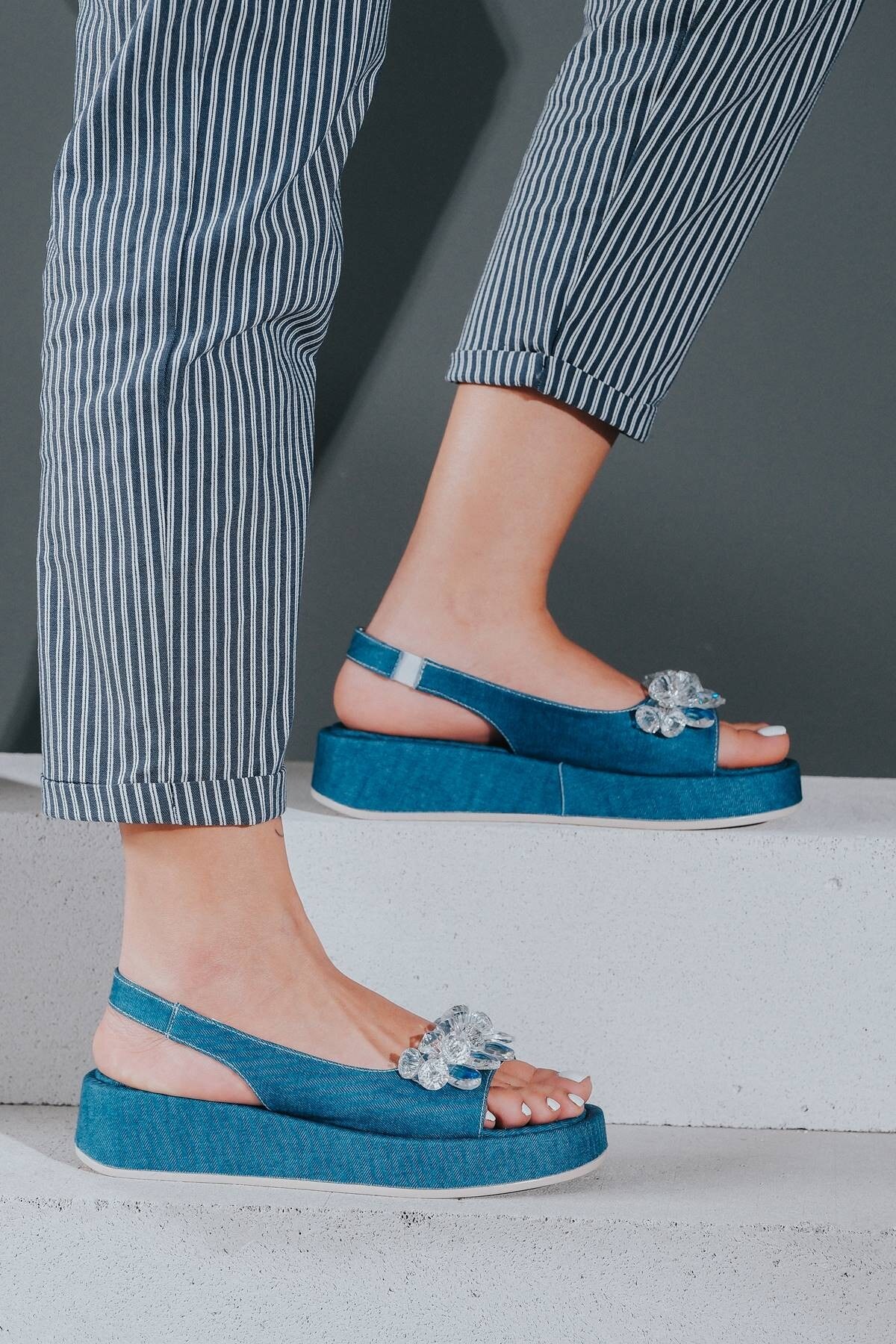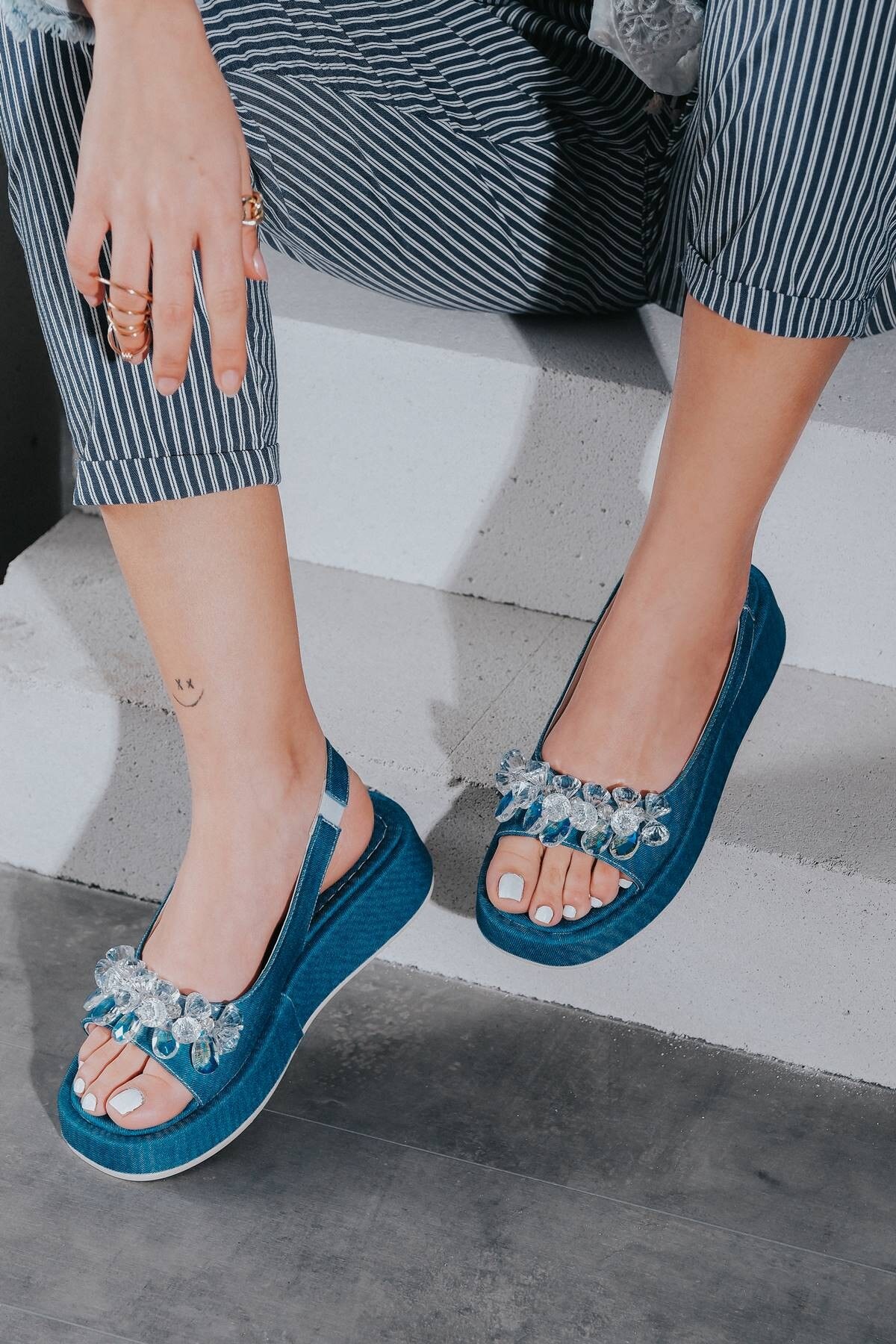 Kadın Taşlı Yumuşak Taban Sandalet Kot