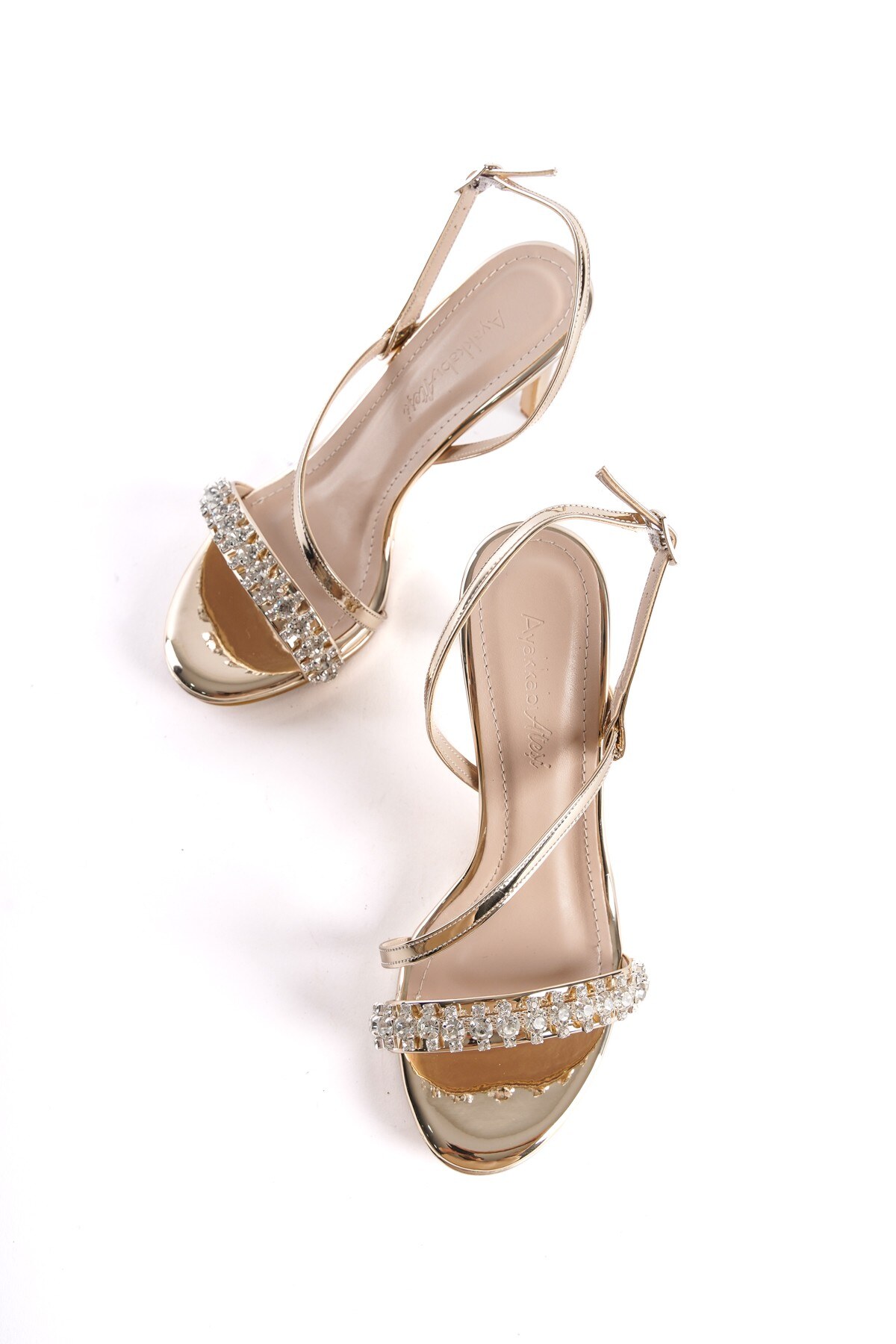 Altın Ayna Taşlı Bant Detaylı Kadın Abiye Ayakkabı Gloria Altın
