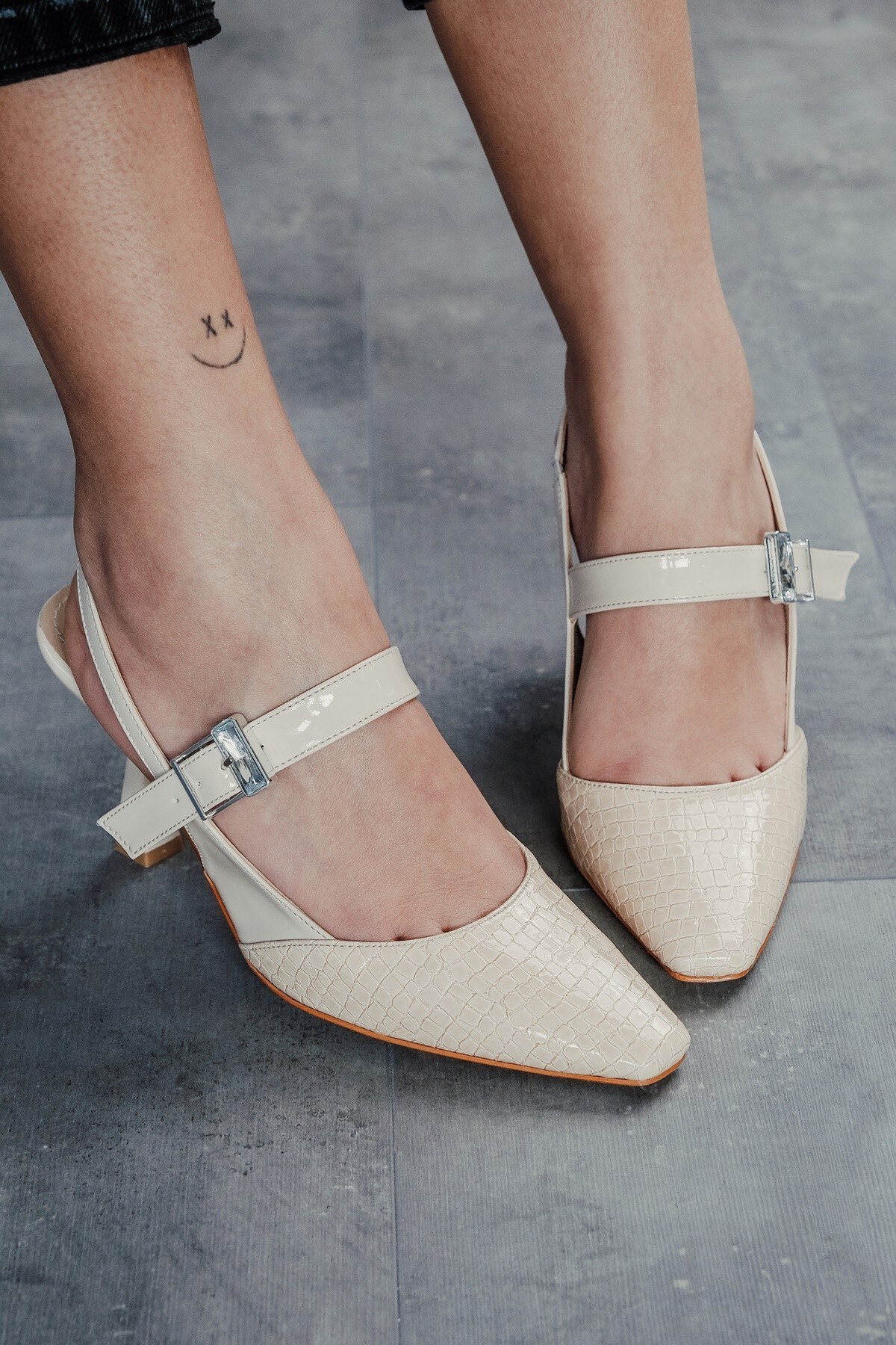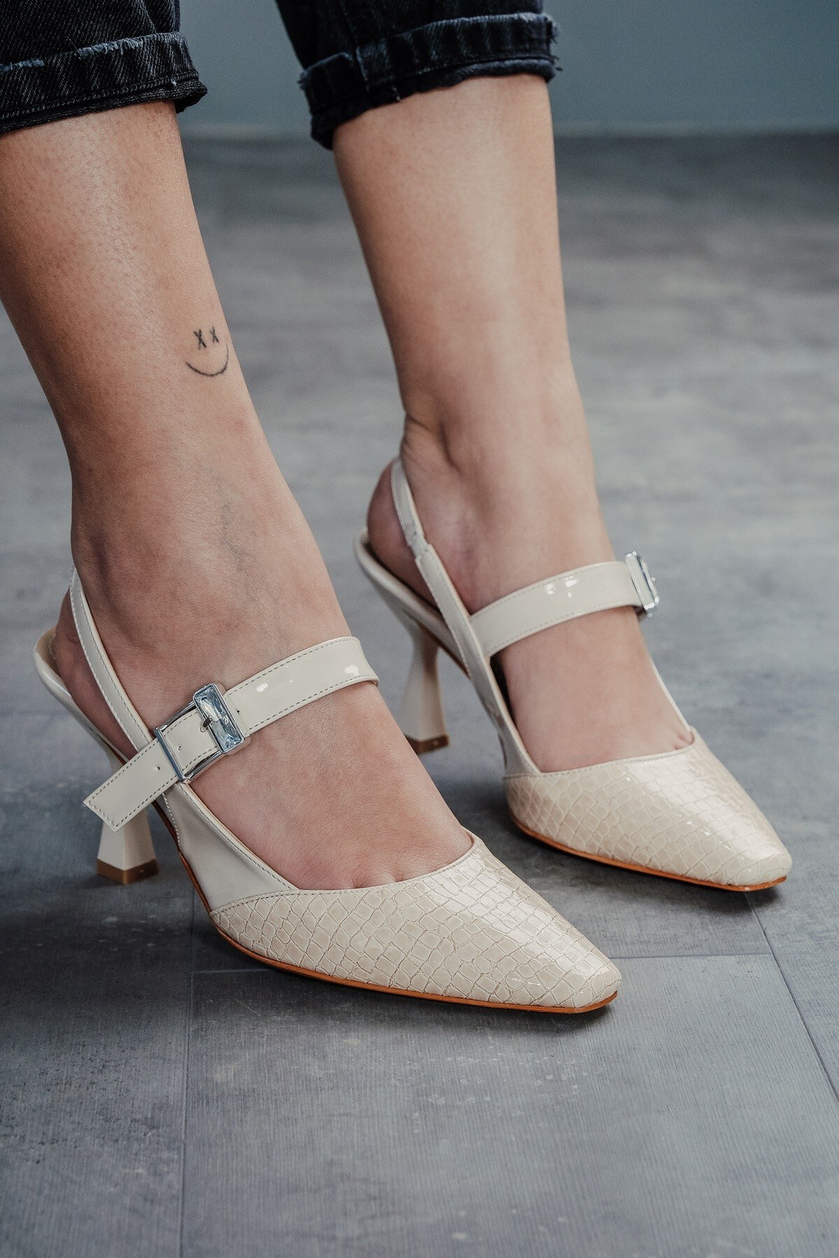 Bej Tasarım Tokalı Rugan Kadın Topuklu Ayakkabı Lisa Bej