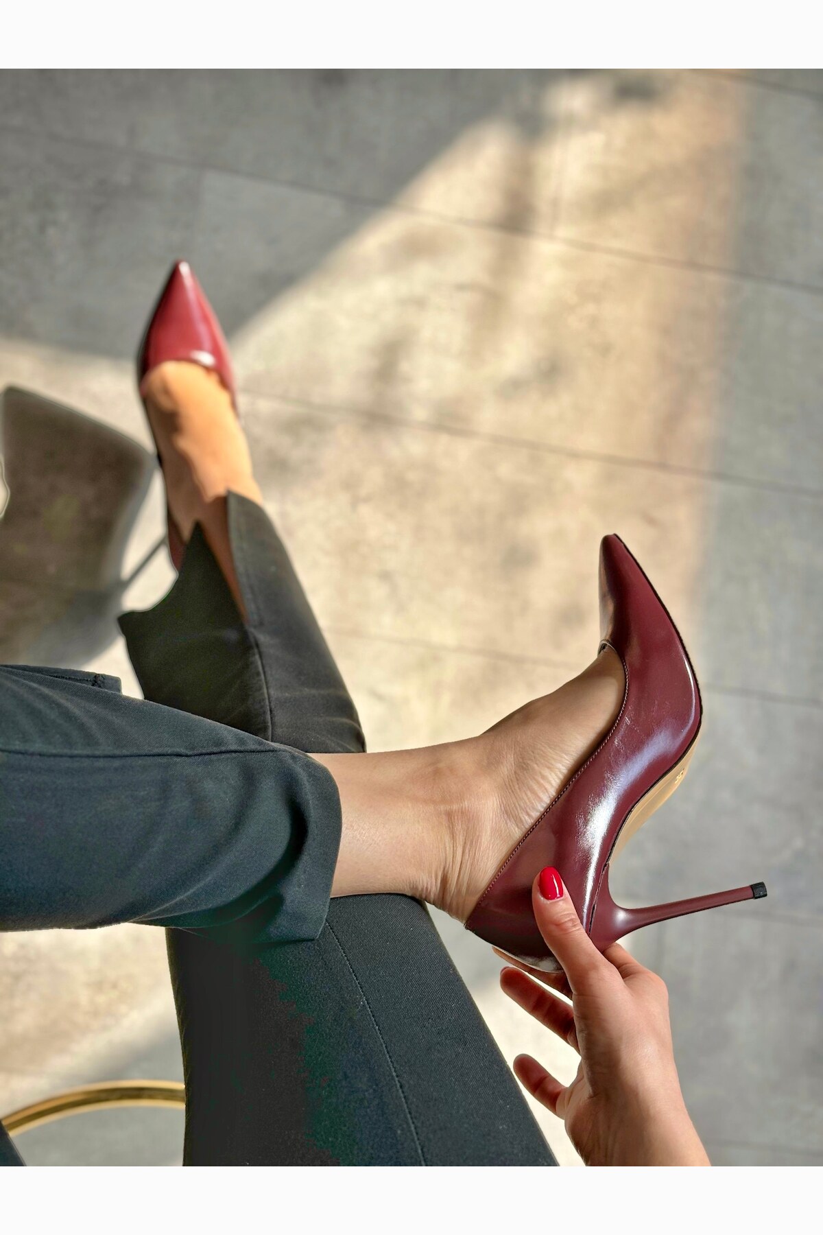 Bordo İnce Topuk Sivri Burunlu Kadın Stiletto Osama Bordo