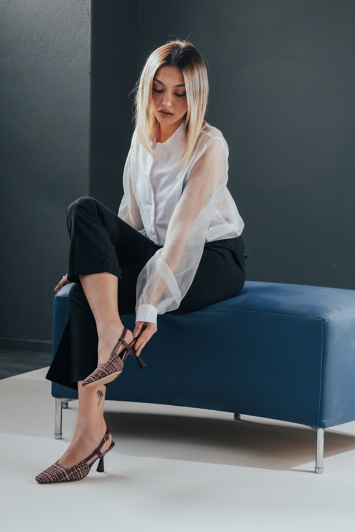 Kadın Tasarım Keten Topuklu Ayakkabı Hale