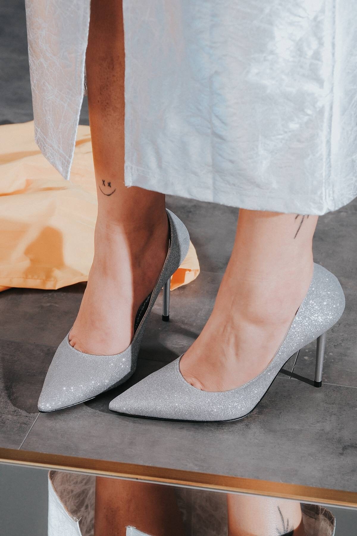 Gümüş Sim İnce Topuk Sivri Burunlu Kadın Stiletto Osama Gümüş Sim