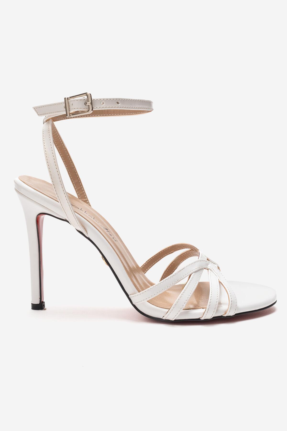 Kadın Açık Kafes Burun Tasarım İnce Topuklu Biyeli Ayakkabı Cage Beyaz Rugan