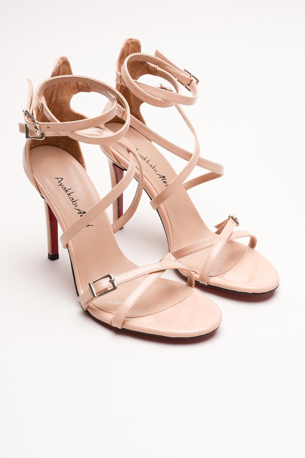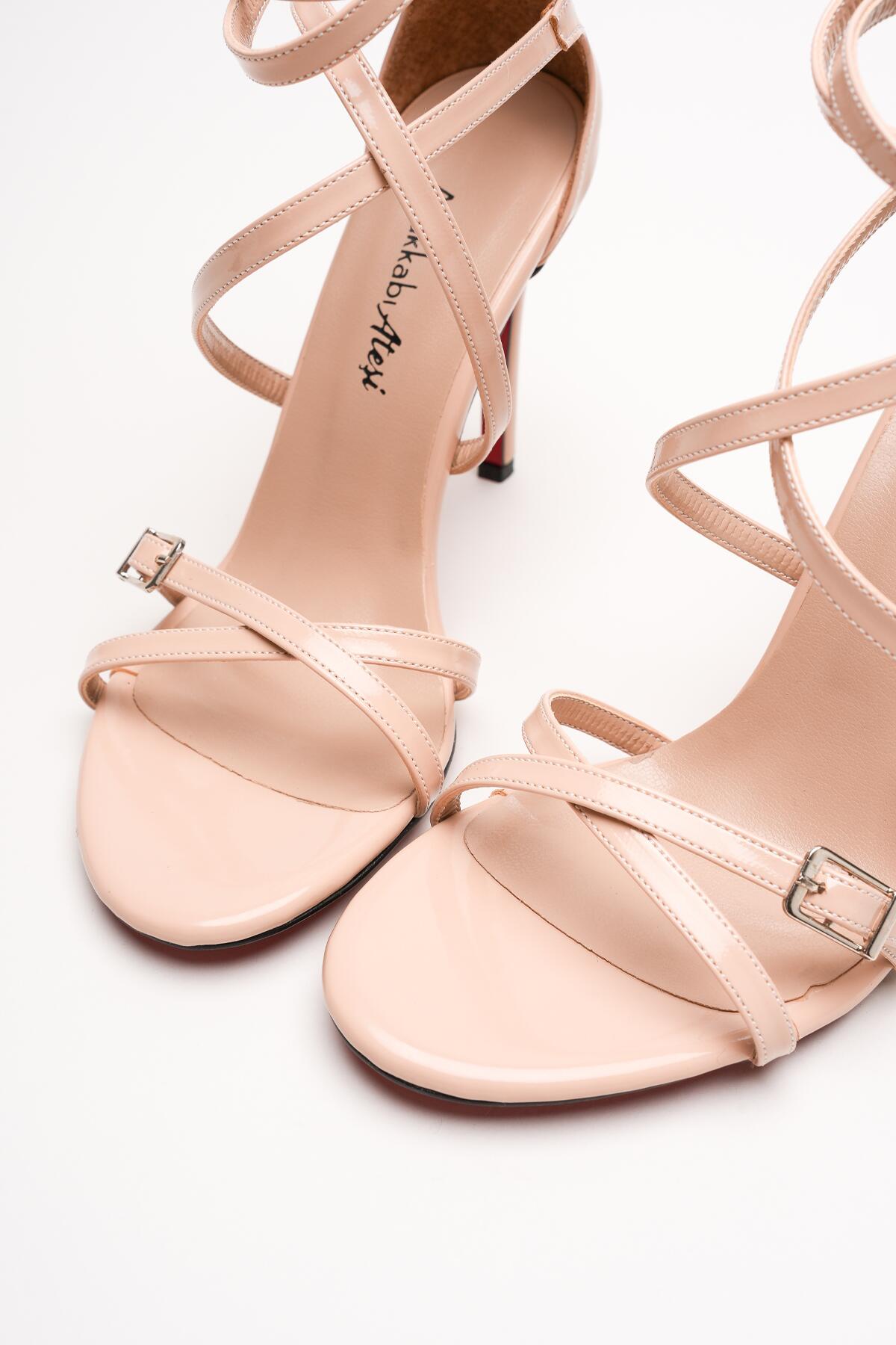 Kadın Biyeli Tokalı İnce Topuklu Ayakkabı Nela Nude Rugan