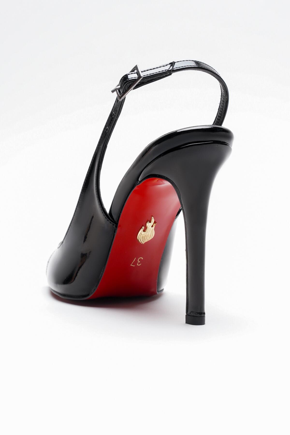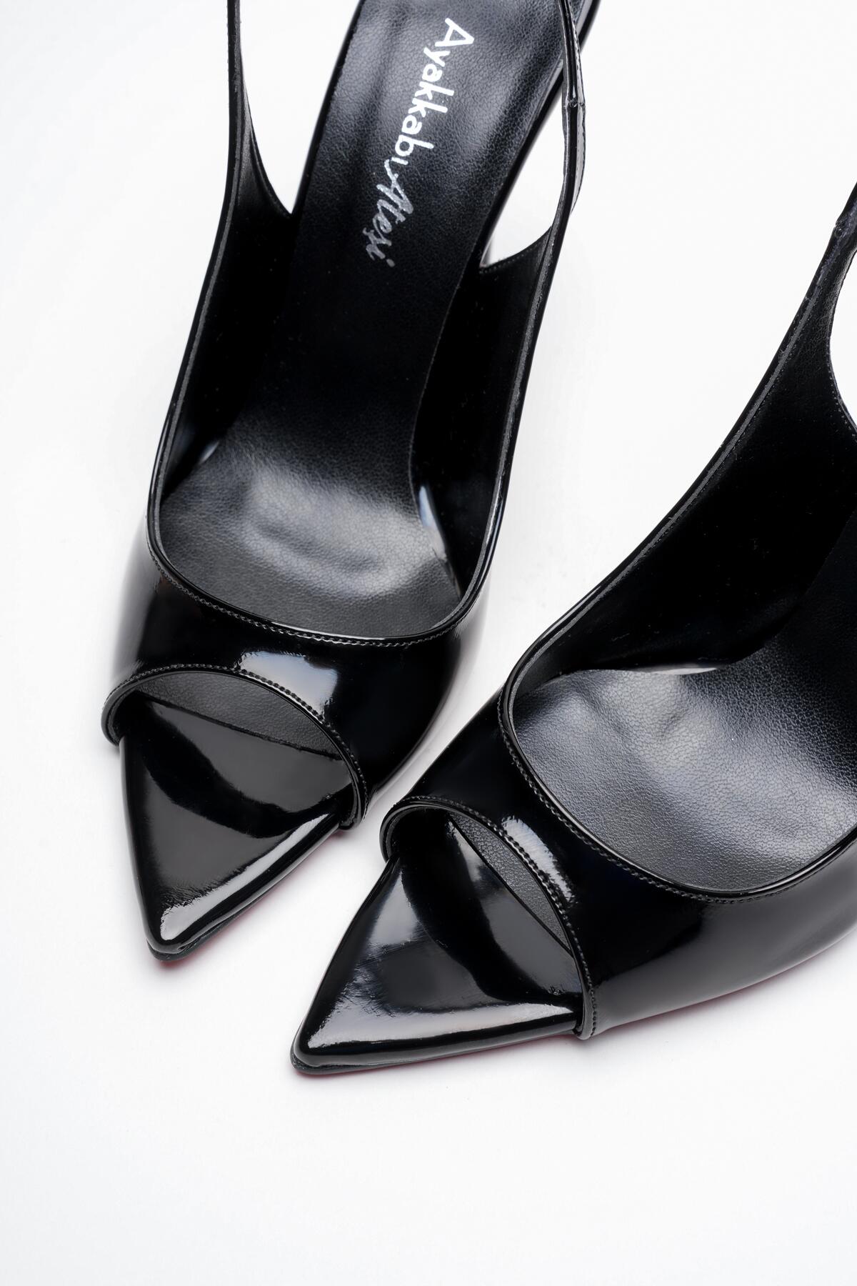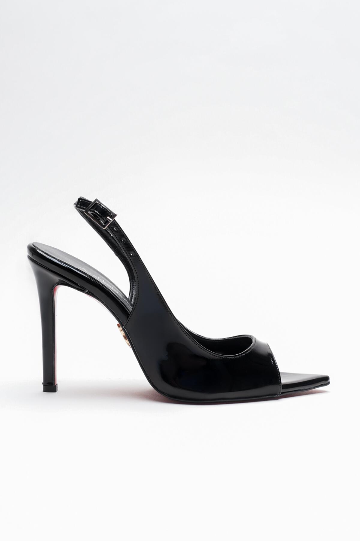 Kadın Burun Arka Açık İnce Topuklu Ayakkabı Acare Siyah Rugan