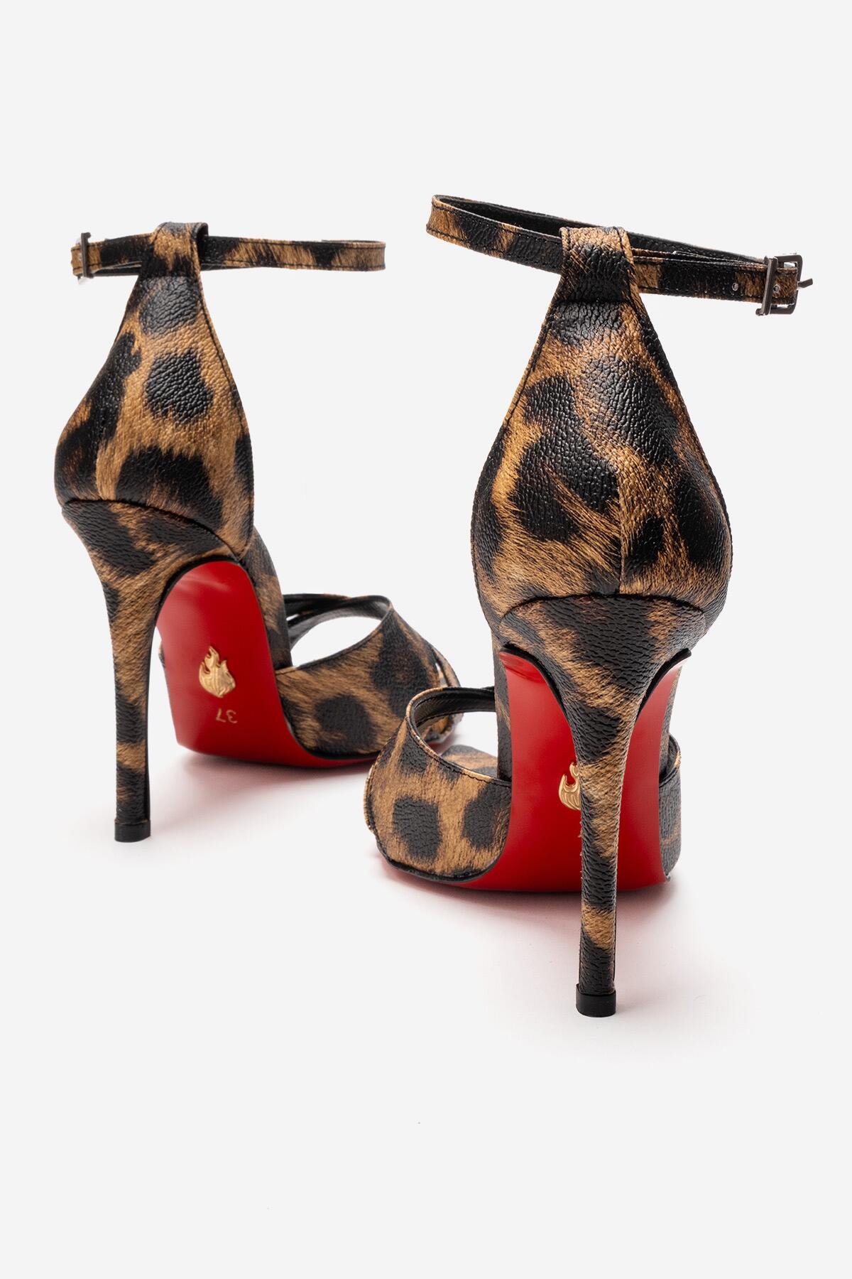 Kadın Çapraz Bantlı Bilekten Bağlamalı Stiletto Topuklu Ayakkabı Sorie Leopar