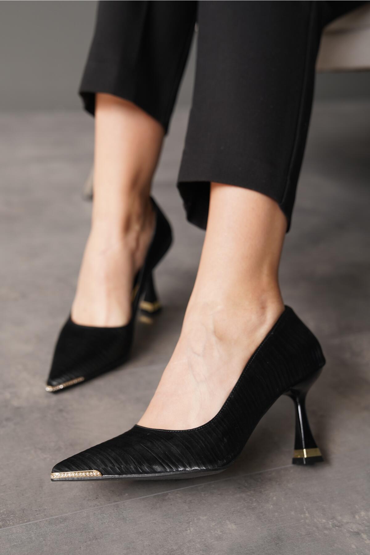 Kadın Dokulu Saten Orta Topuklu Ayakkabı Siera Siyah