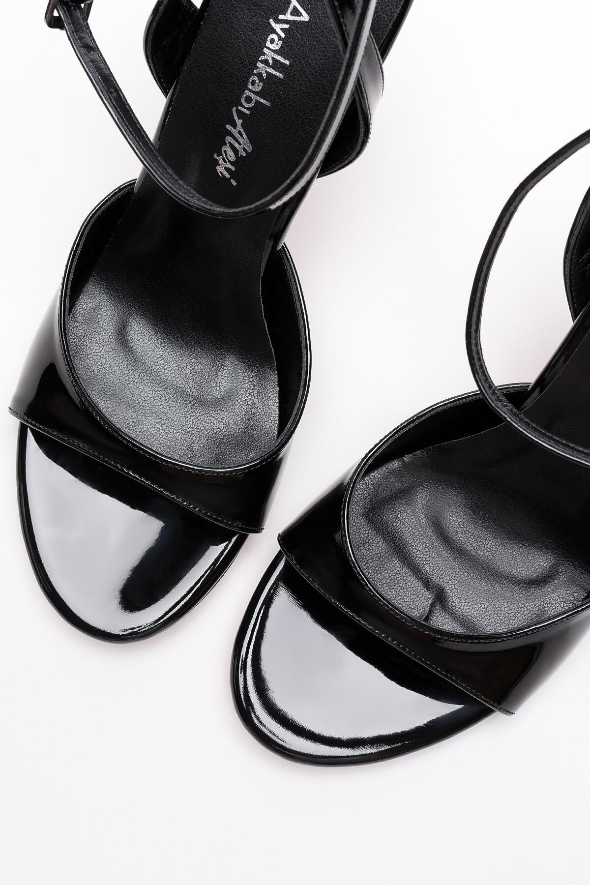 Kadın İnce Bant Arka Baretli Topuklu Ayakkabı Livora Siyah Rugan