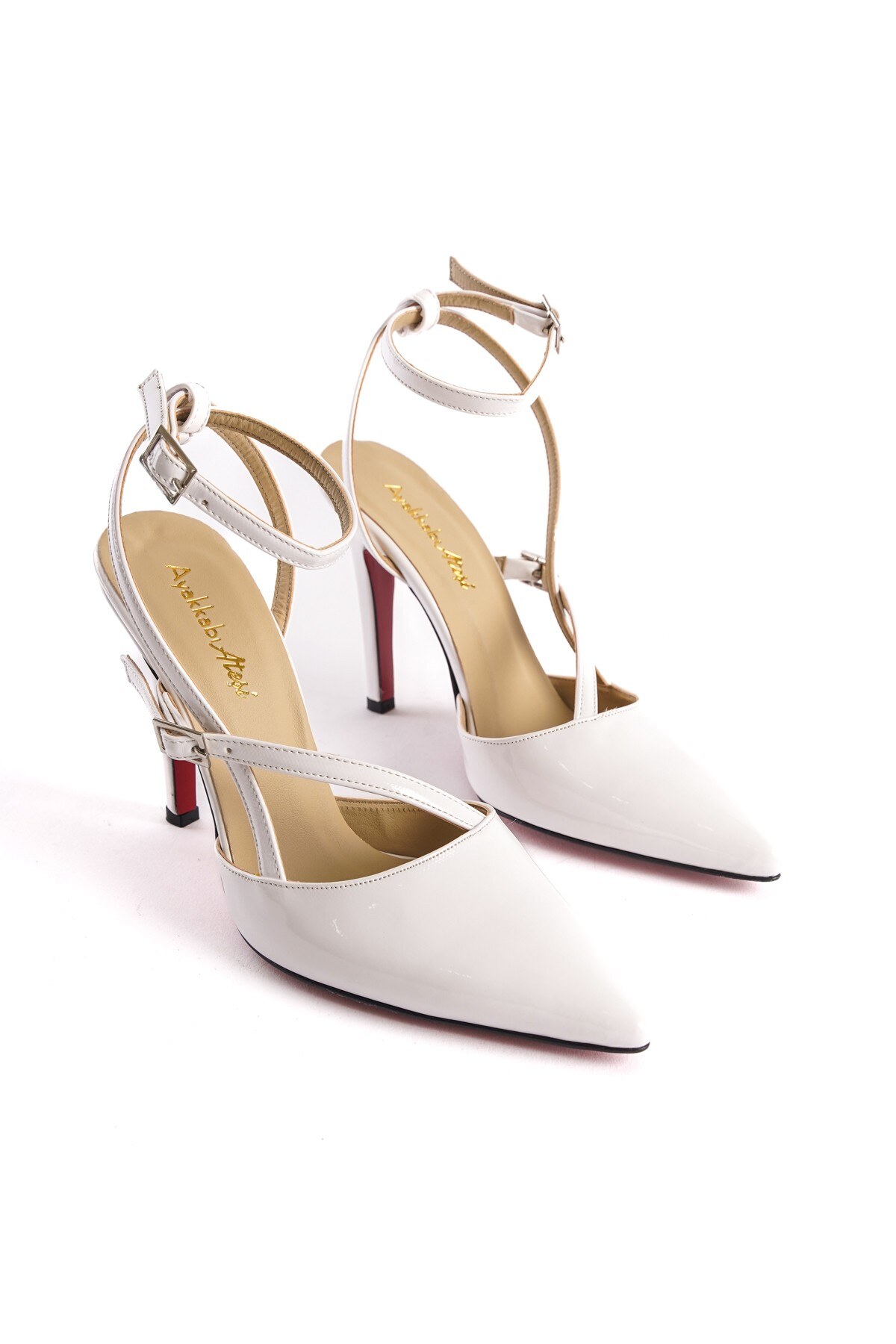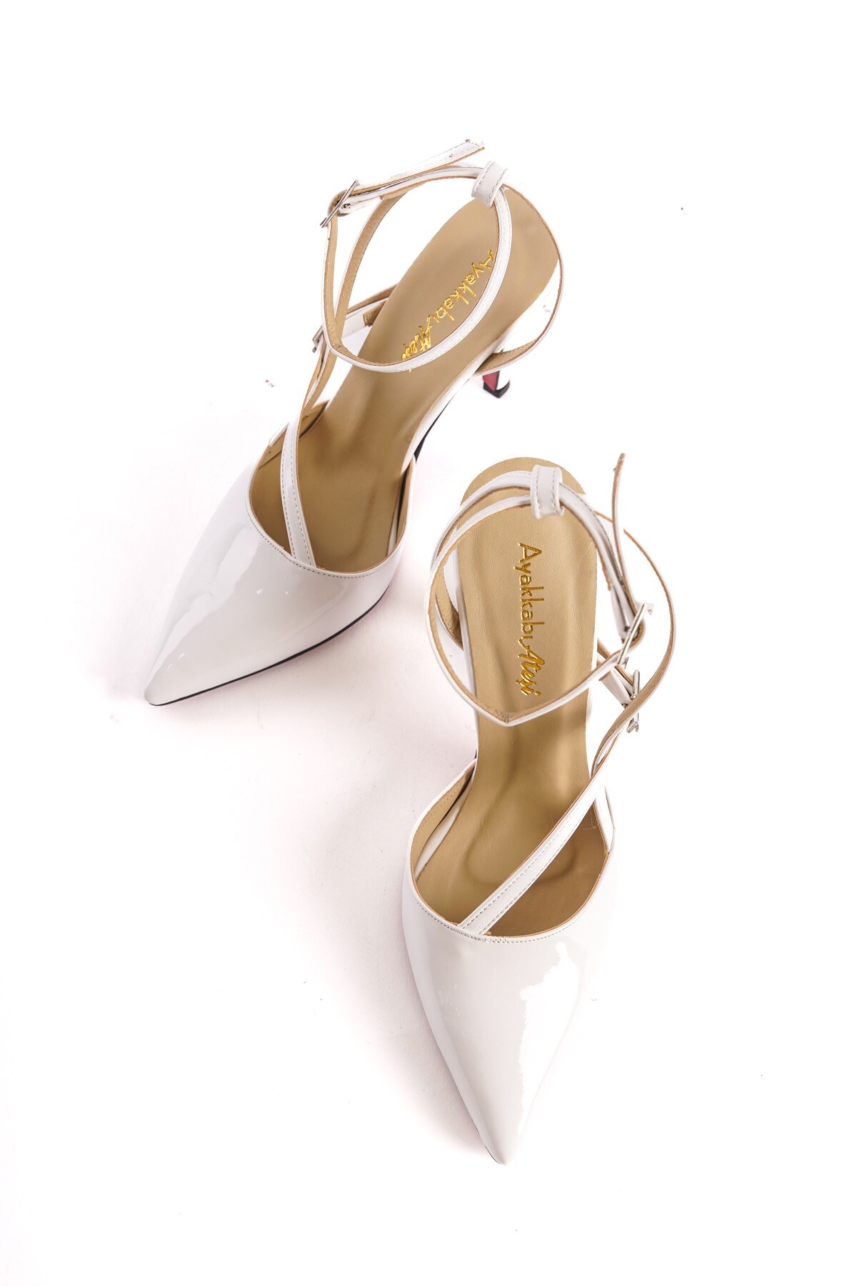 Kadın İnce Topuk Zarif Topuklu Ayakkabı Mikola Beyaz Rugan