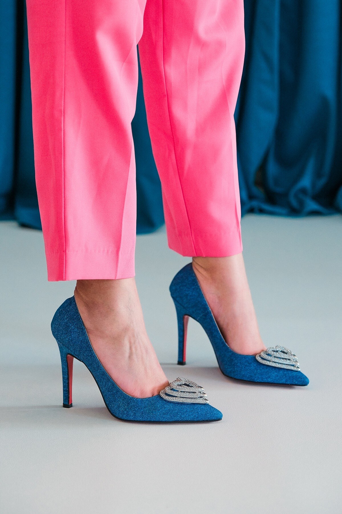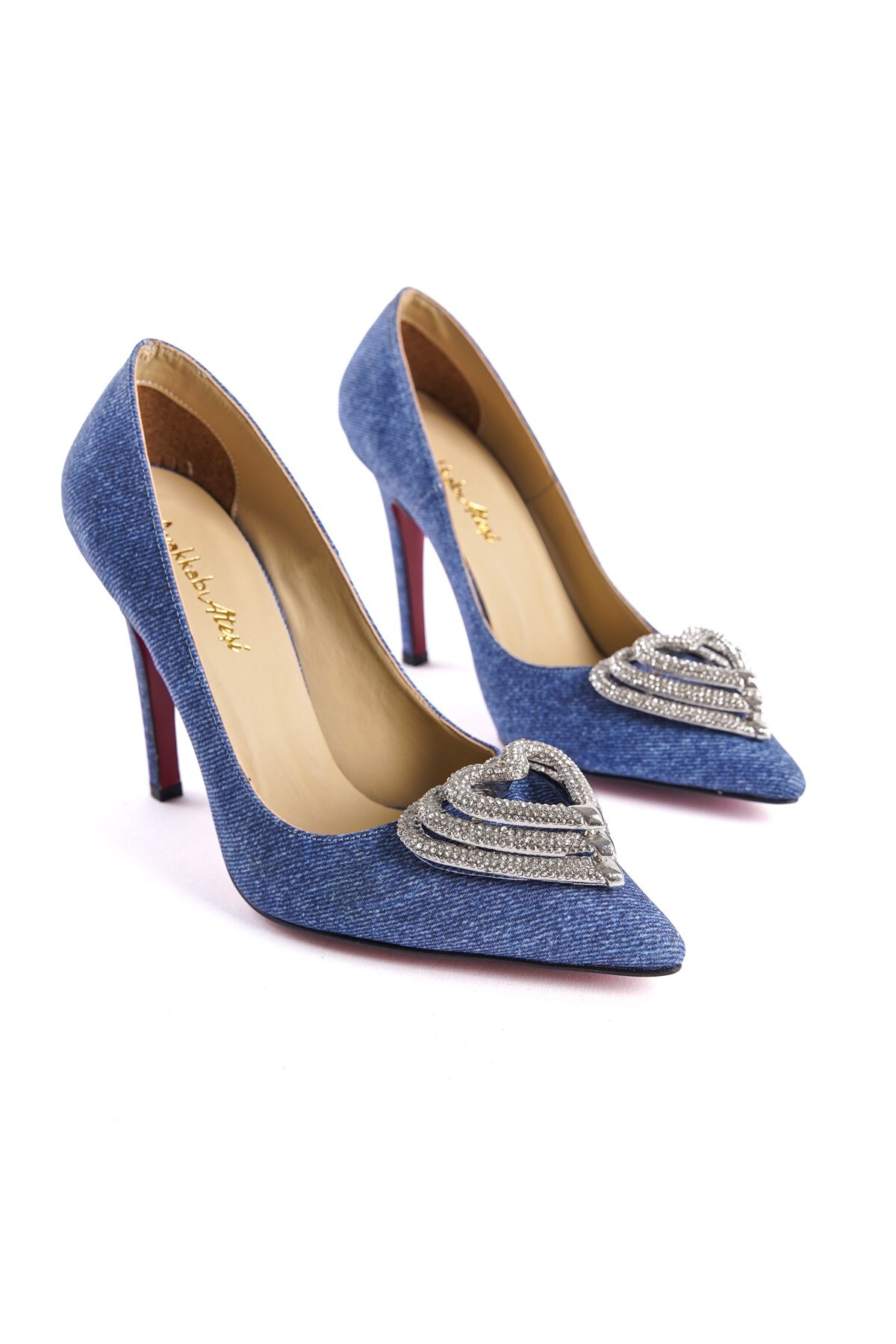 Kadın Kalp Tokalı Stiletto Topuklu Ayakkabı Adrian Mavi Kot
