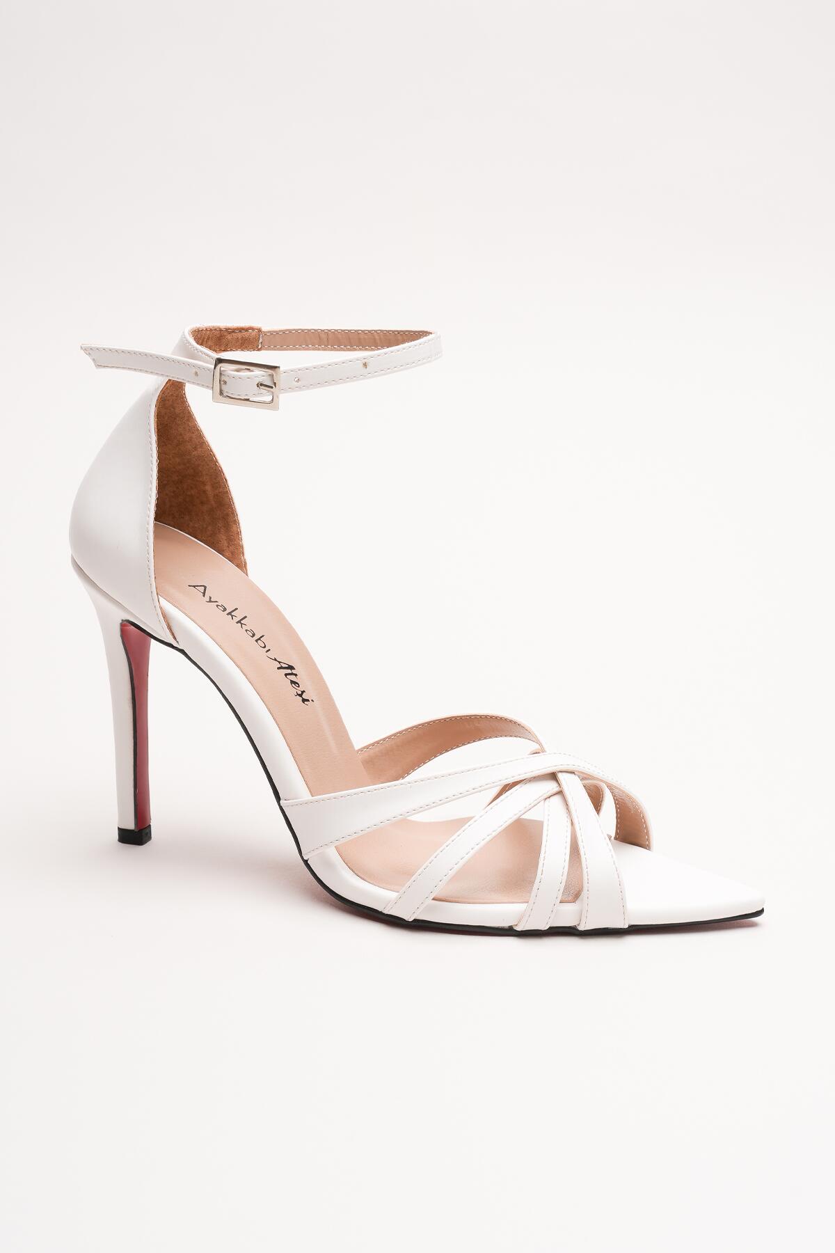 Kadın Özel Tasarım İnce Topuklu Ayakkabı Accosie Beyaz Cilt