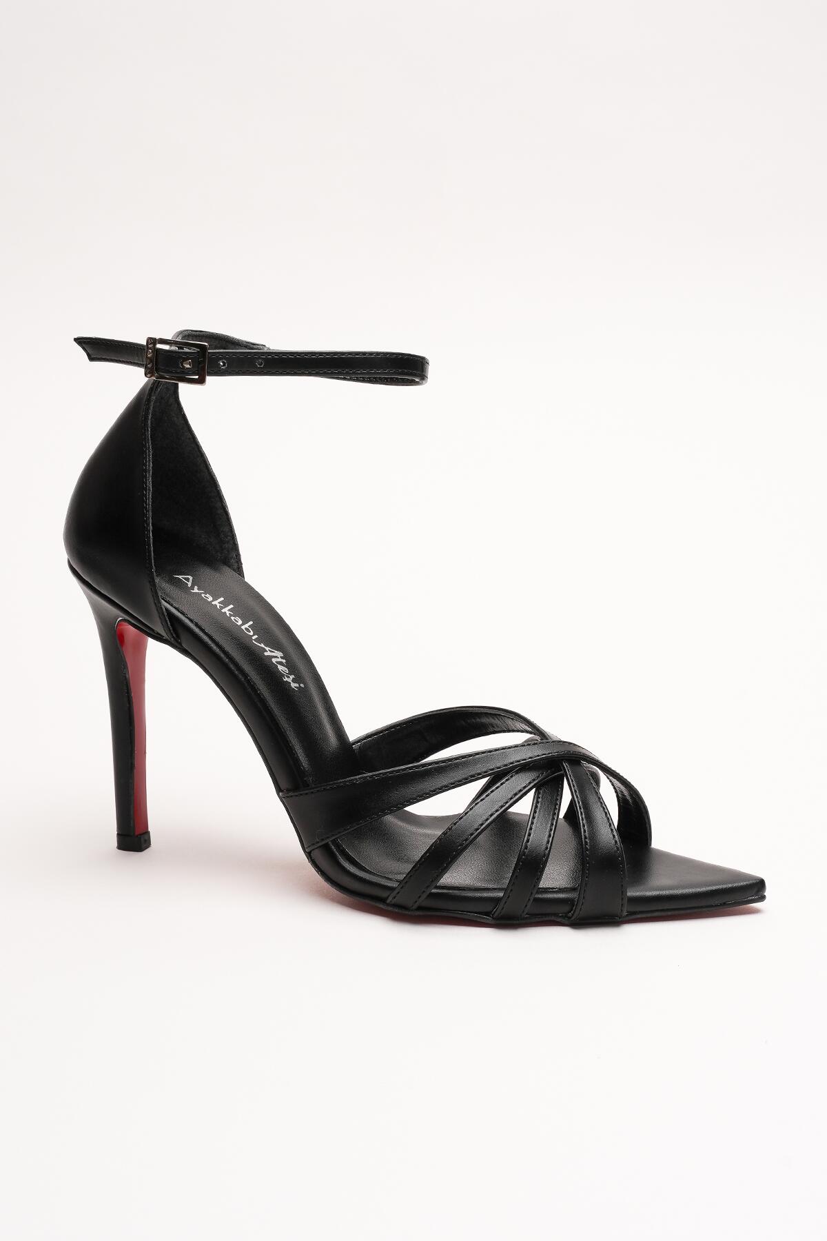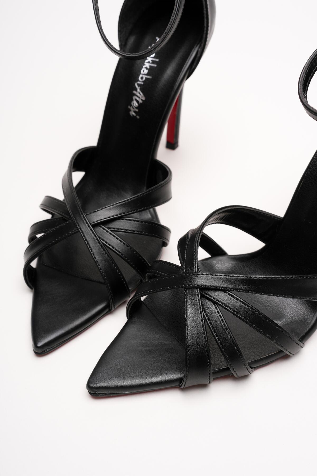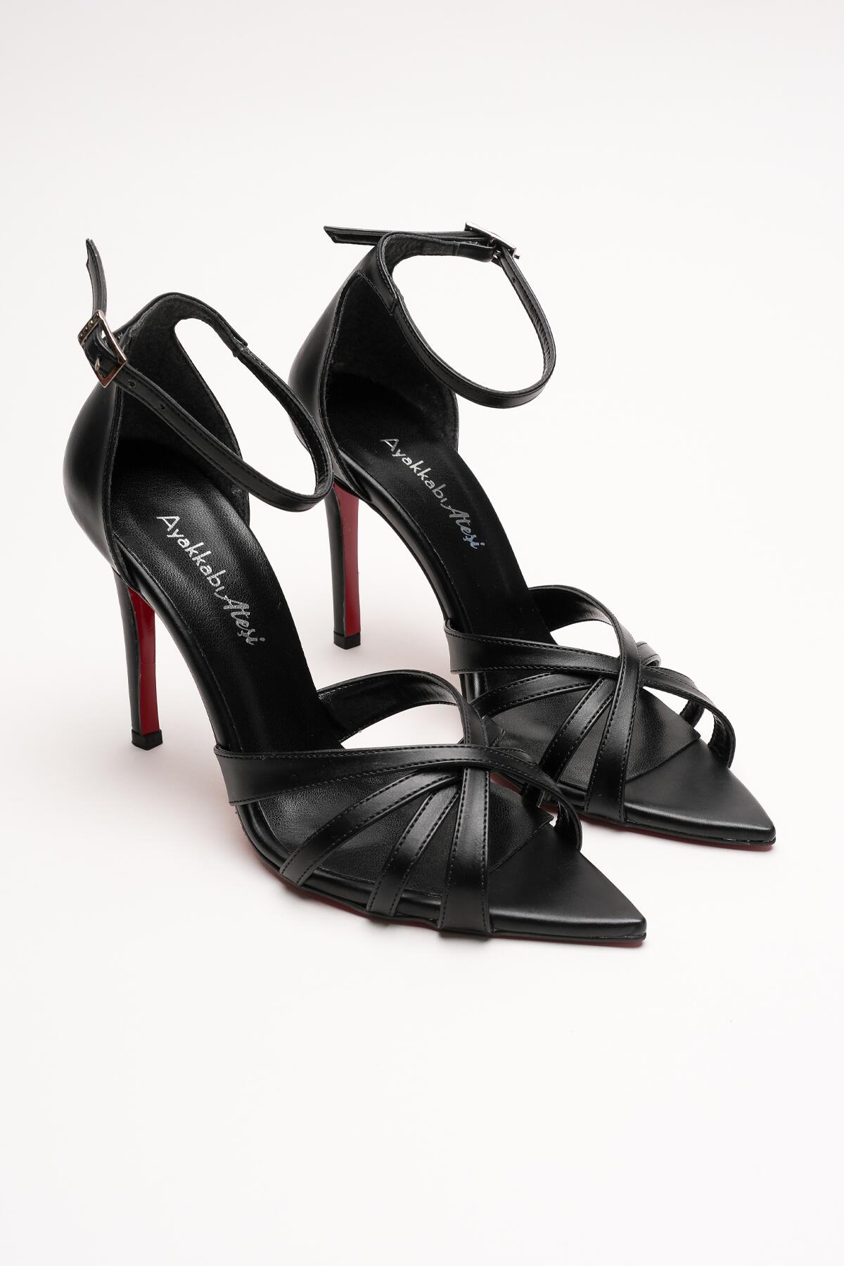Kadın Özel Tasarım İnce Topuklu Ayakkabı Accosie Siyah Cilt