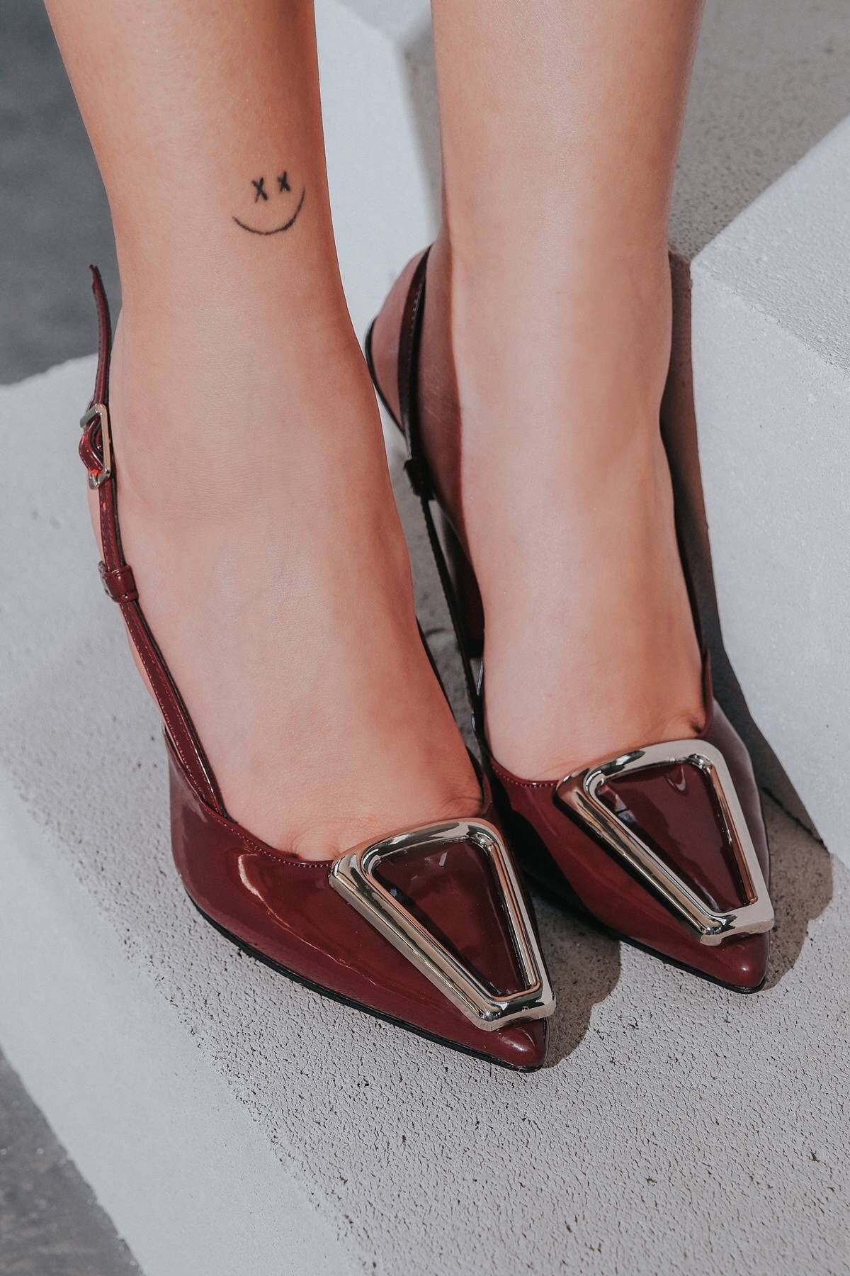 Kadın Özel Tokalı İnce Topuklu Ayakkabı Tina Bordo Cilt