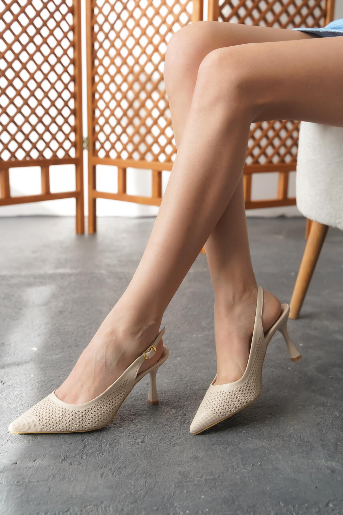 Kadın Sivri Burun Delikli Stiletto Vanna Bej