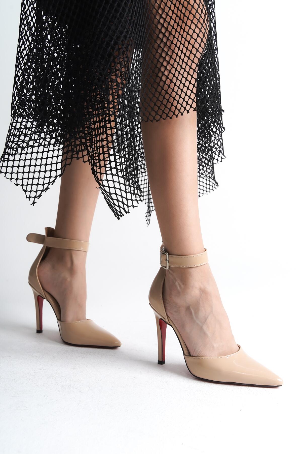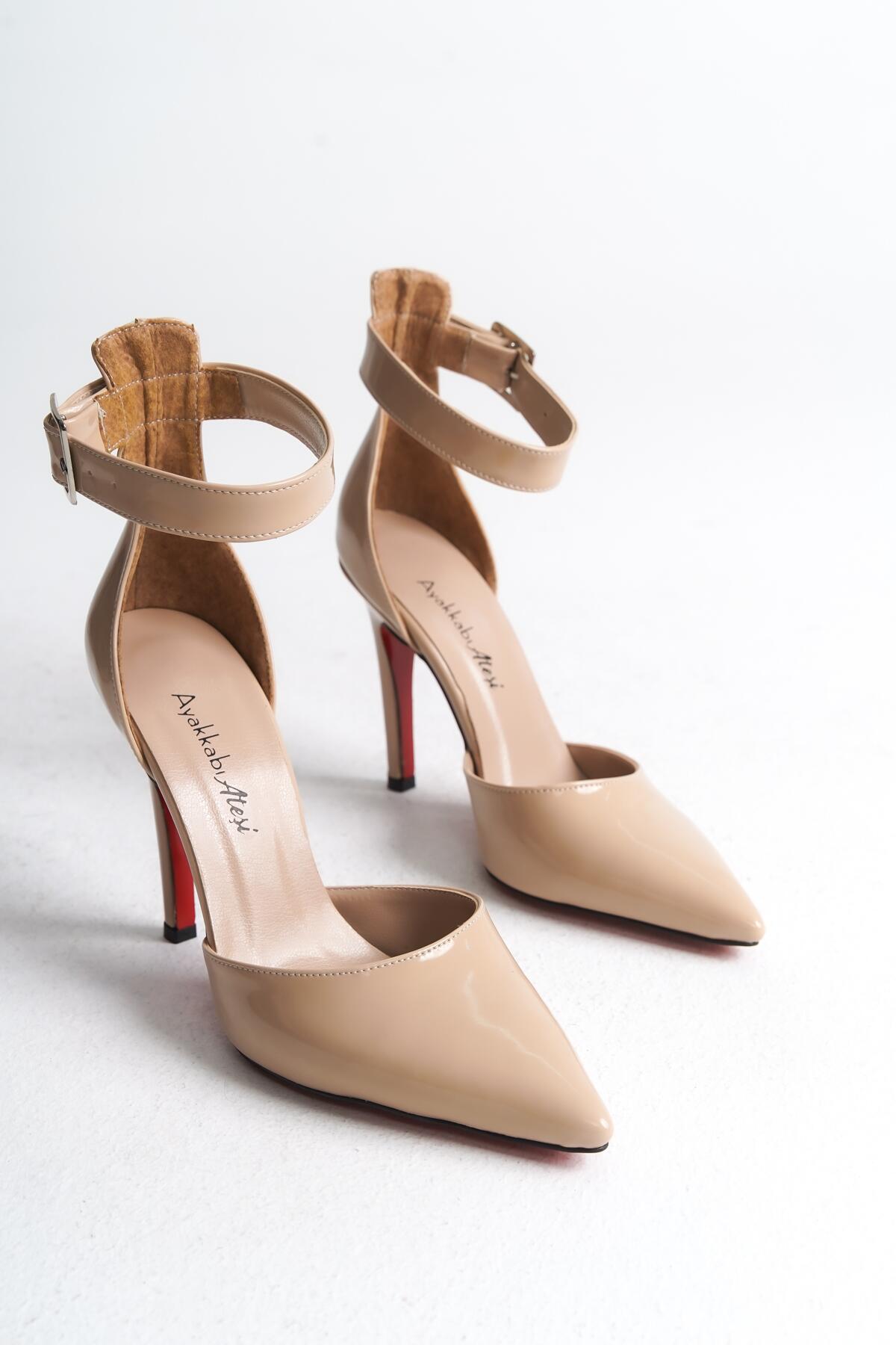 Kadın Sivri Burun İnce Topuklu Ayakkabı Sage Nude Rugan