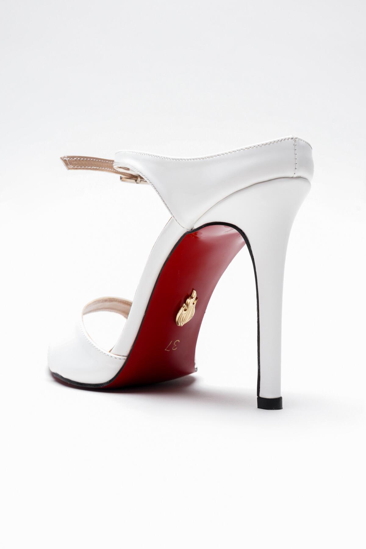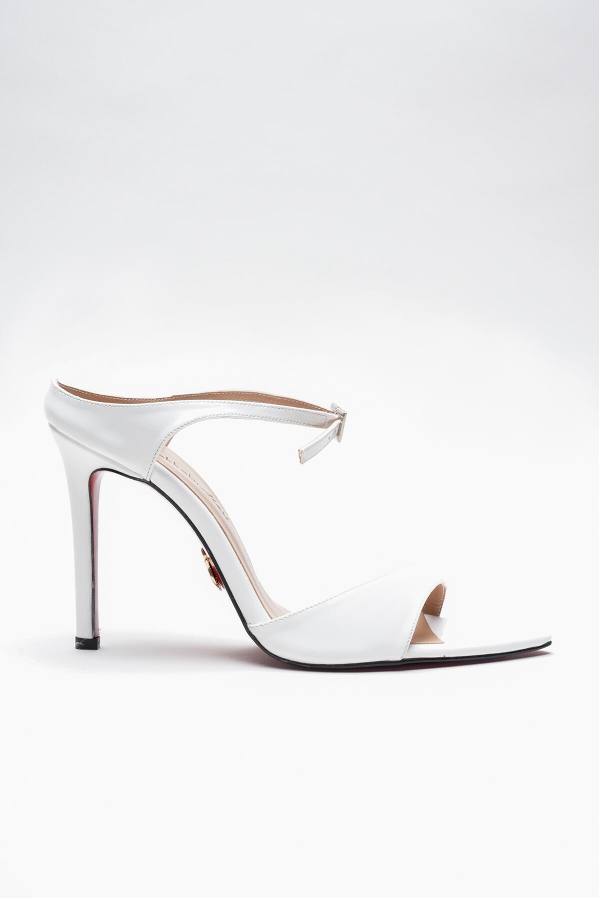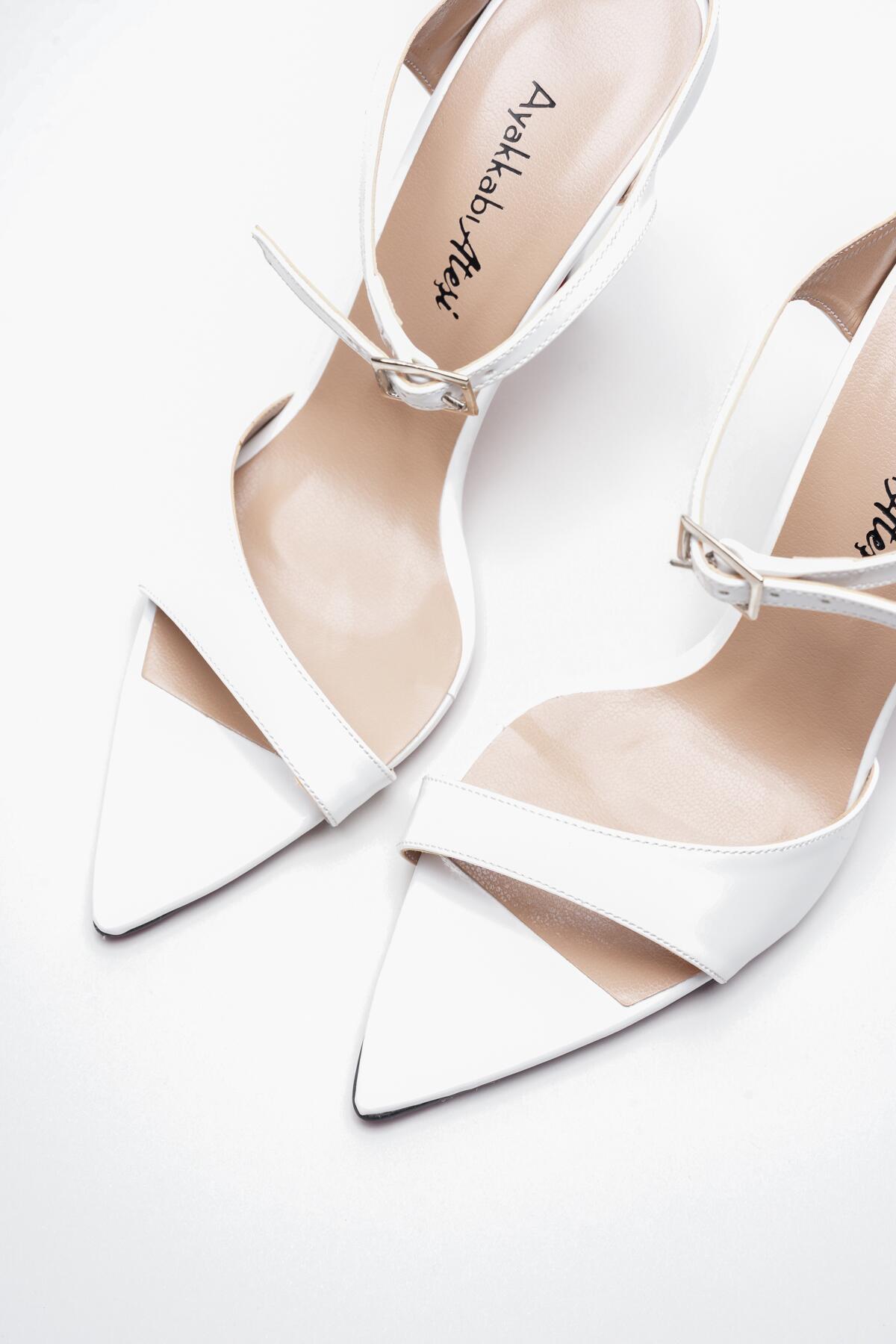 Kadın Sivri Burun Yazlık İnce Topuklu Ayakkabı Yore Beyaz Rugan