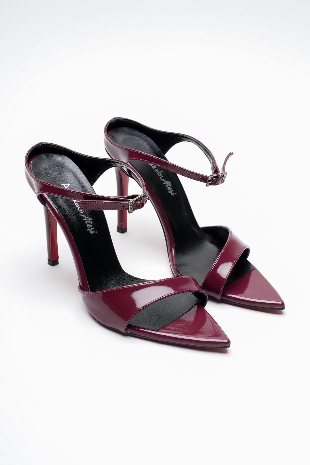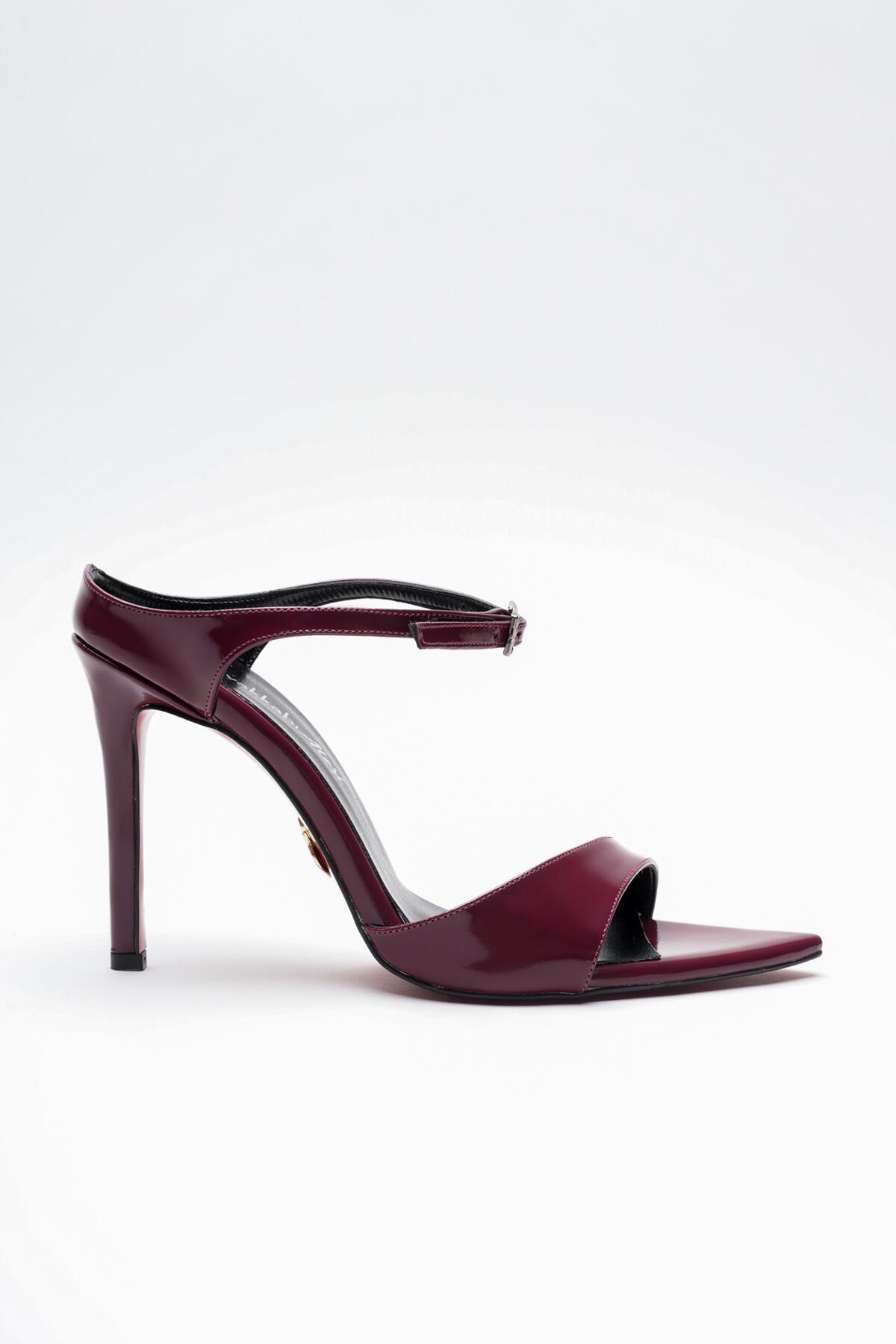 Kadın Sivri Burun Yazlık İnce Topuklu Ayakkabı Yore Bordo Rugan