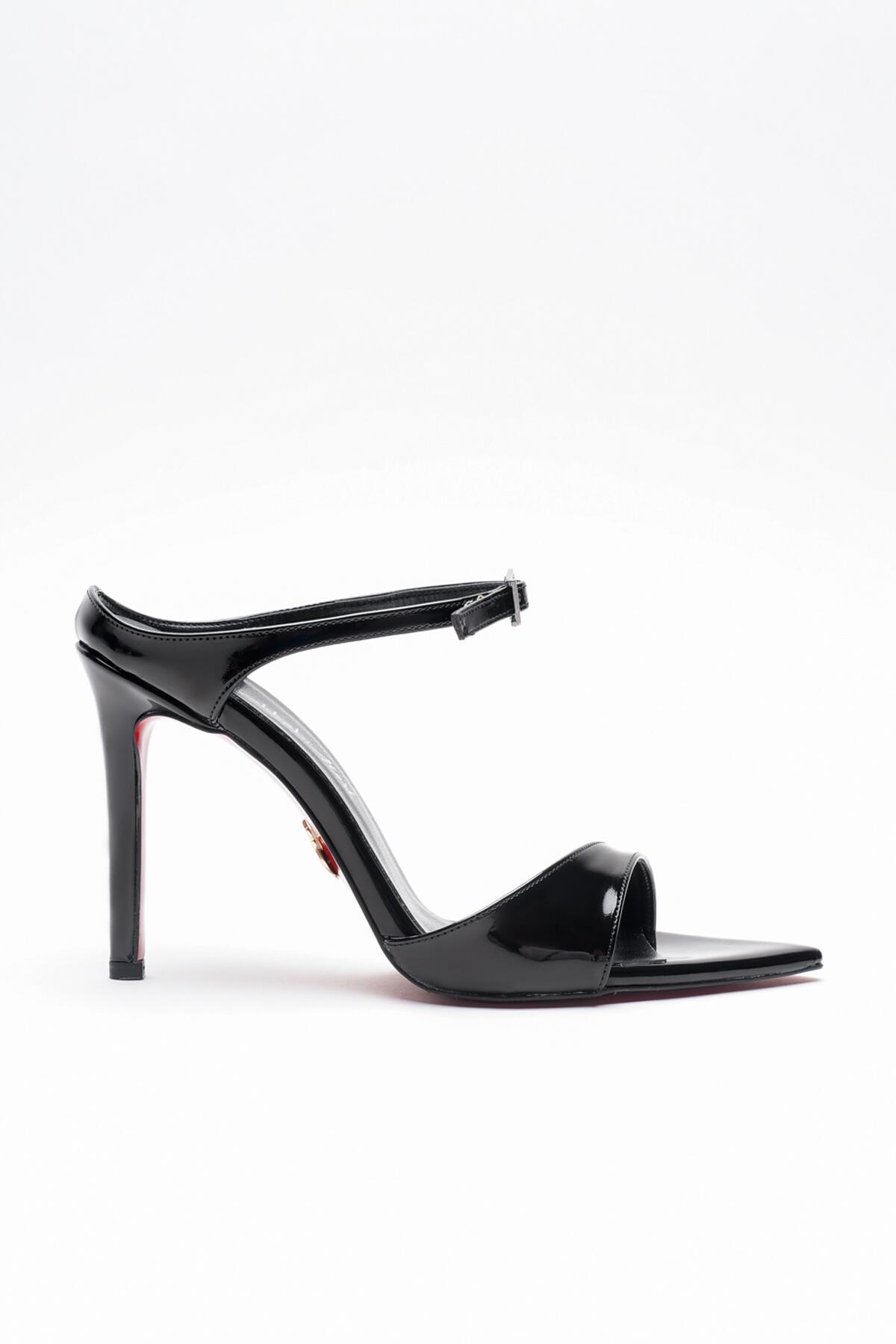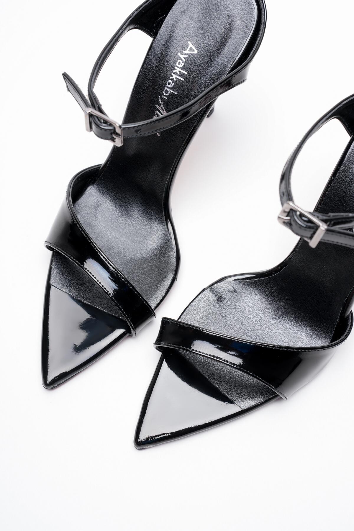 Kadın Sivri Burun Yazlık İnce Topuklu Ayakkabı Yore Siyah Rugan