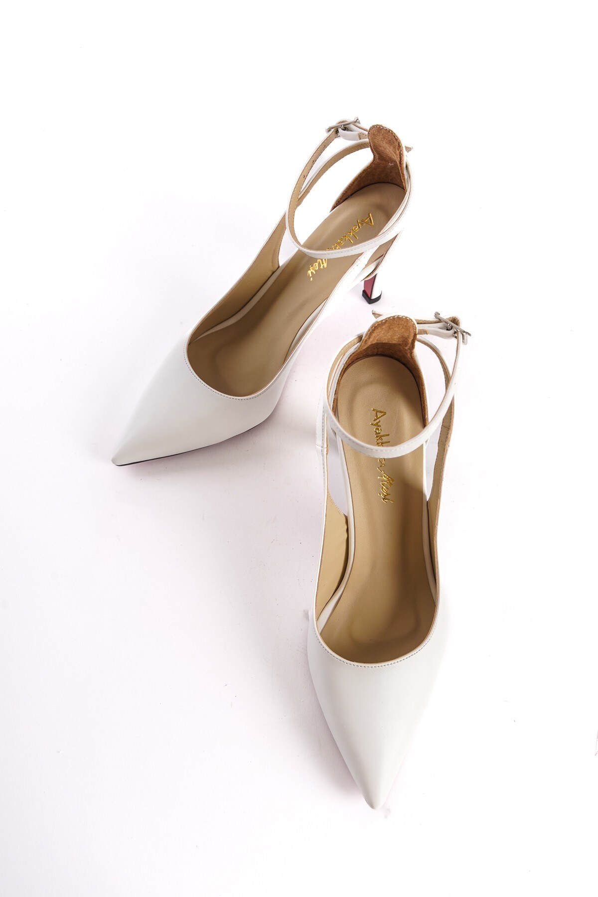 Kadın Tek Baret Kısa Topuklu Ayakkabı Eloi Beyaz Cilt
